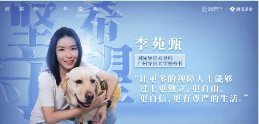 李苑甄女士现任广东导盲犬学校校长,是国际导盲犬联盟认证导盲犬训导师,多年来为国内培养了多名导盲犬训导员,具有导盲犬相关的理论和实践技能。曾担任中国香港导盲犬服务中心导盲犬导师、广州市海珠区赛北斗导盲犬服务中心导盲犬导师及校长、广州导盲犬学校校长及导盲犬导师等。2020年应浙江省爱心事业基金会邀请成为导盲犬专项基金首席顾问,2021年被南方周末及腾讯课堂评选为“2021年度沸腾新青年”,2024年获中国香港导盲犬协会邀请为培训繁殖顾问。