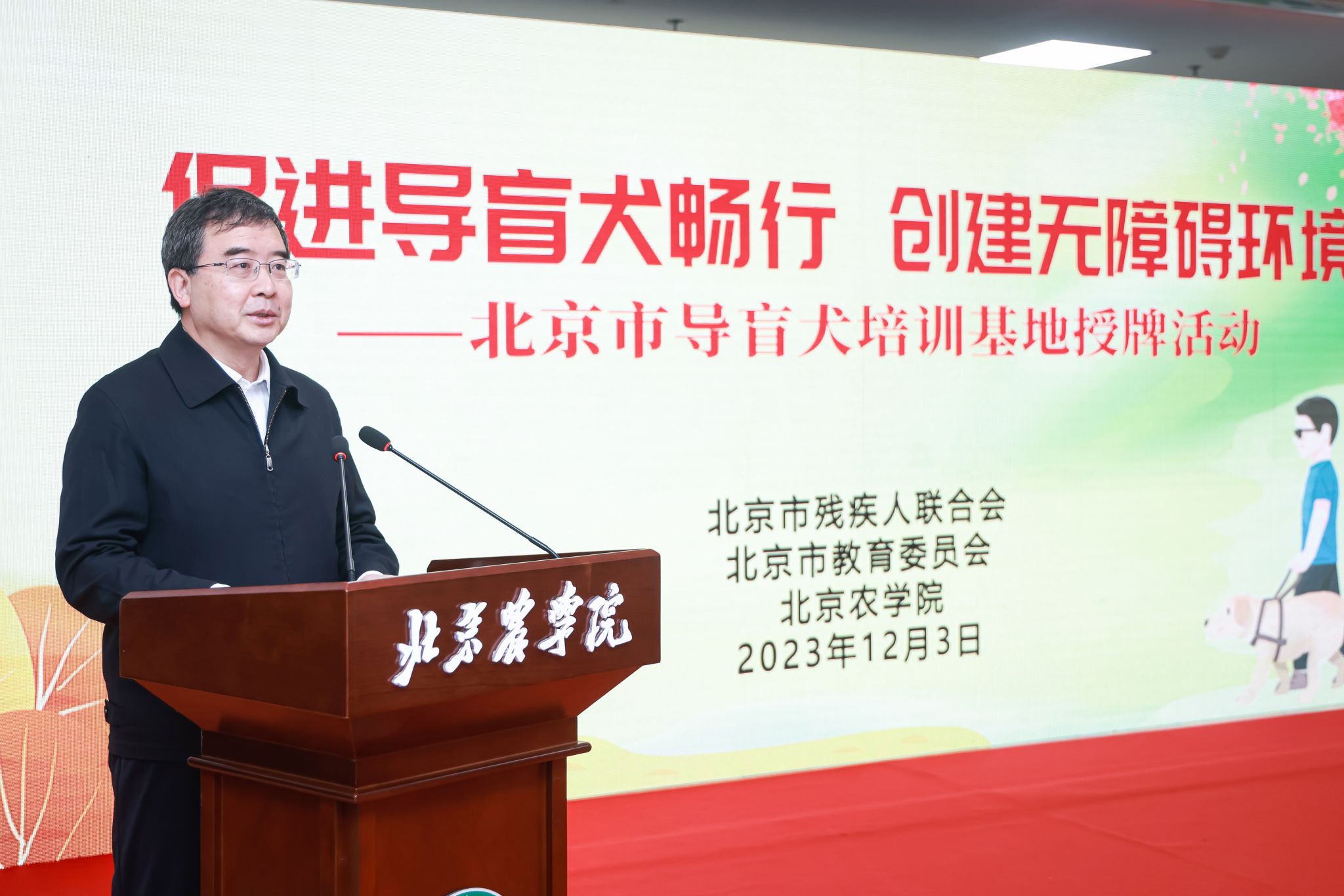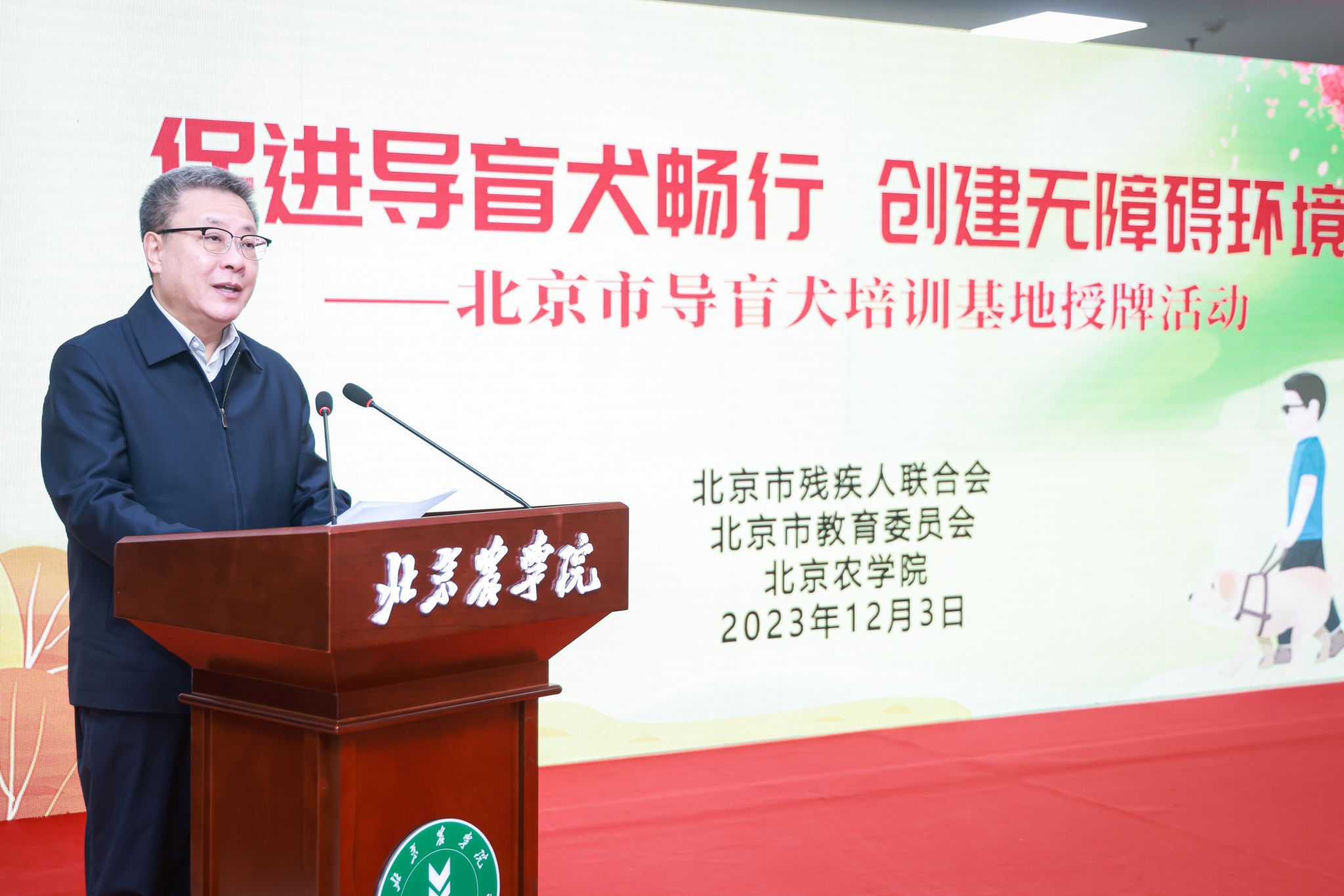 best365官方网站党委书记赵锋在致辞中指出,作为一所北京市属都市农林特色的高水平应用型大学,学校坚持以服务新时代首都发展、“四个中心”建设和全面推进乡村振兴为使命,依托学科专业优势,积极参与导盲犬事业发展这一重要民生工程,在品种选育、训导、保健等方面打下扎实基础、取得了初步成效。他强调,学校将深入贯彻习近平总书记关于残疾人事业发展的重要论述和指示批示精神,认真落实中国残联和市委、市政府决策部署,以此次北京市导盲犬培训基地挂牌落户为契机,在市教委、市残联的指导和支持下,全力建好、管好、办好、用好这一重要基地,用心、用情、用力服务首都残疾人事业高质量发展,以实际行动展现 “北农担当”,贡献“北农力量”。