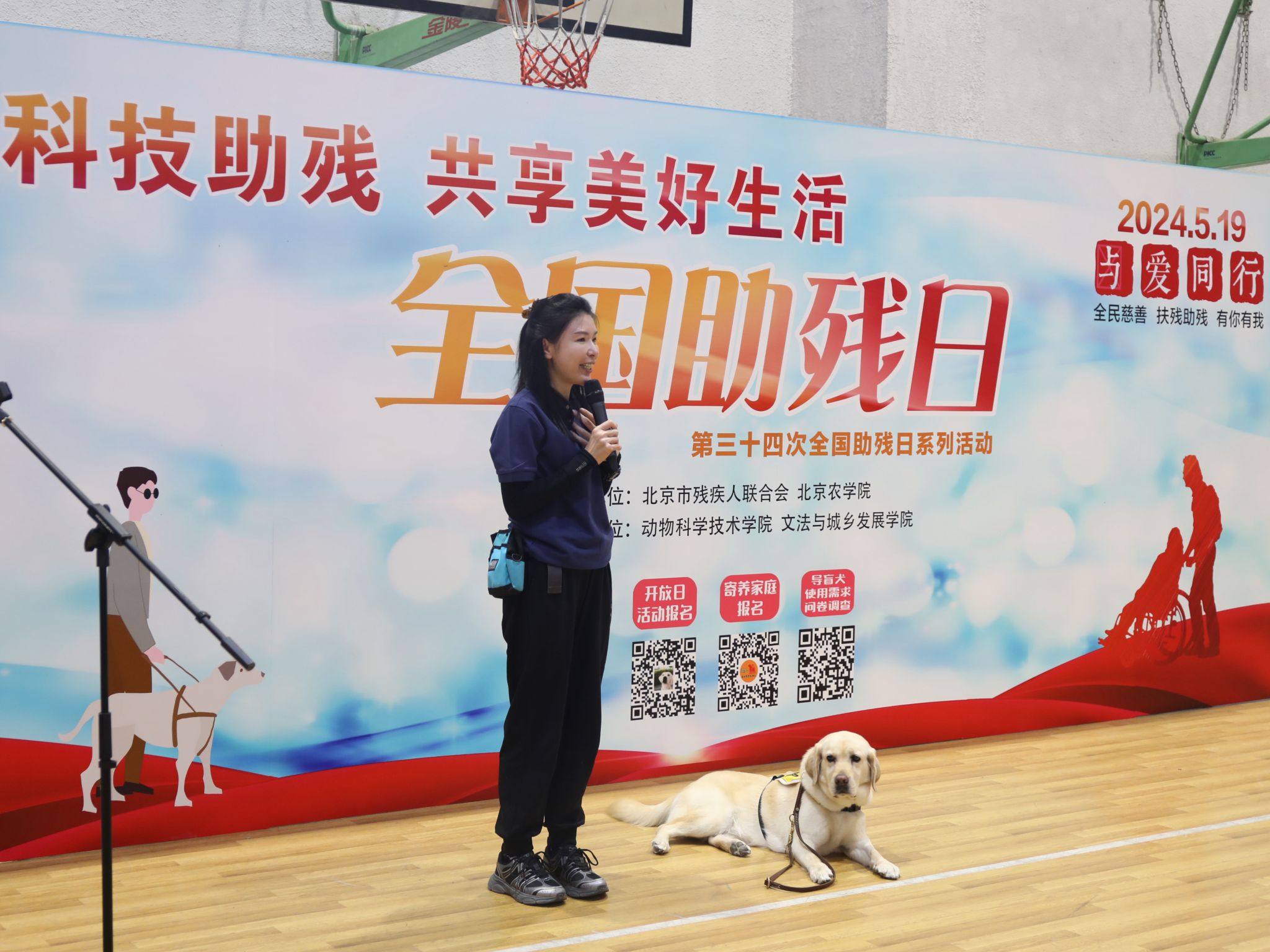 5月19日是第34个全国助残日,best365官方网站联合北京市残疾人联合会,依托北京市导盲犬培训基地,面向社会开展北京导盲犬中心开放日活动,科普导盲犬相关知识,让更多人体验视障人士使用导盲犬的实际感受,更好的助力视障人士无障碍出行。北京市残联党组成员、副理事长董连民,学校党委常委、副院长张劲柏,北京市无障碍环境建设促进中心主任赵子龙,市残联有关同志,best365官方网站师生代表,寄养家庭代表以及社会各界爱心人士参加了此次活动。活动由动物科学技术学院党委书记党登峰主持。