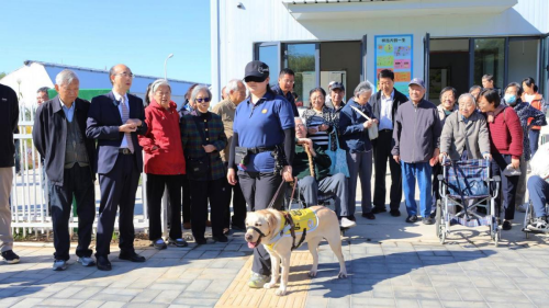 老同志们还现场观摩了导盲犬模拟演示,导盲犬训练师展示了中心训练有素的犬只如何在各种环境下为视障人士提供帮助的场景。老同志们对基地卓有成效的工作和训练有素的导盲犬表示高度赞赏,并就关心的导盲犬日常训练流程和工作推进情况进行了沟通了解。