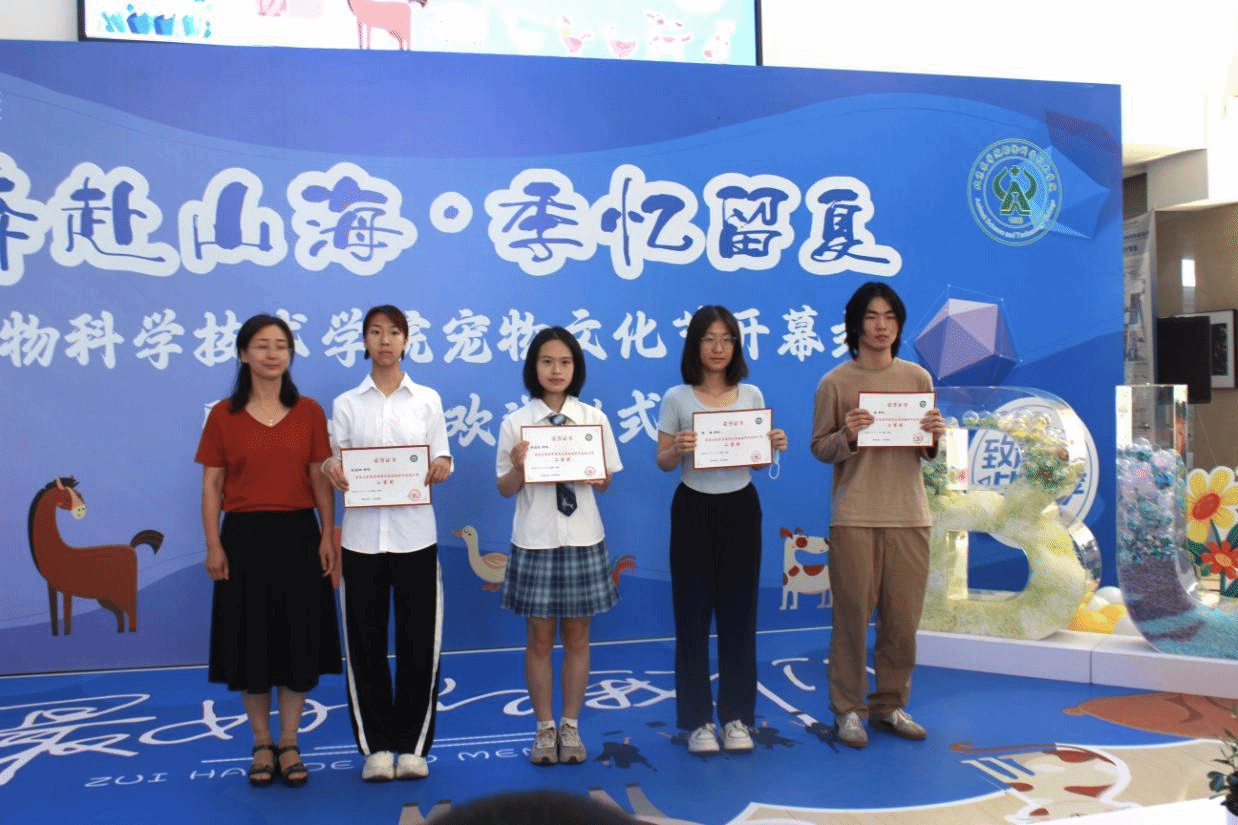 活动现场,党登峰宣布动科学院举办第十二届宠物文化节开幕,俞涛、姚华、董虹为第五届动物科学技能大赛获奖同学颁奖。