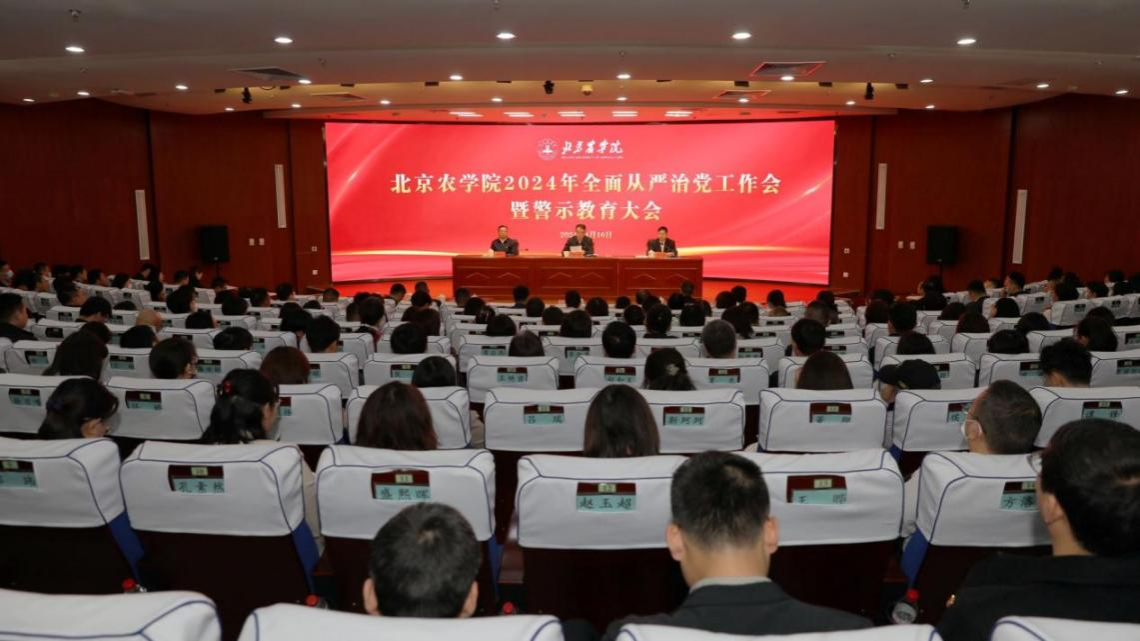 4月16日,学校召开2024年全面从严治党工作会暨警示教育大会,会上观看了警示教育片,党委书记赵锋以《以首善标准开展党纪学习教育 坚定不移推动全面从严治党向纵深发展 为都市农林特色高水平应用型大学建设提供坚强保障》为题讲授党纪学习教育专题党课,强调要准确把握党纪学习教育目标要求、任务安排,把党纪学习教育作为解决党员干部对党规党纪“不上心、不了解、不掌握”问题的有效途径,教育引导全体党员干部在学懂弄通、知行合一上下功夫,切实做到学纪、知纪、明纪、守纪。要把党纪学习教育与巩固拓展主题教育成果衔接起来,与贯彻落实学校第四次党代会精神结合起来,切实将学习教育成果转化为推动学校高质量发展的强大动力和实际成效。