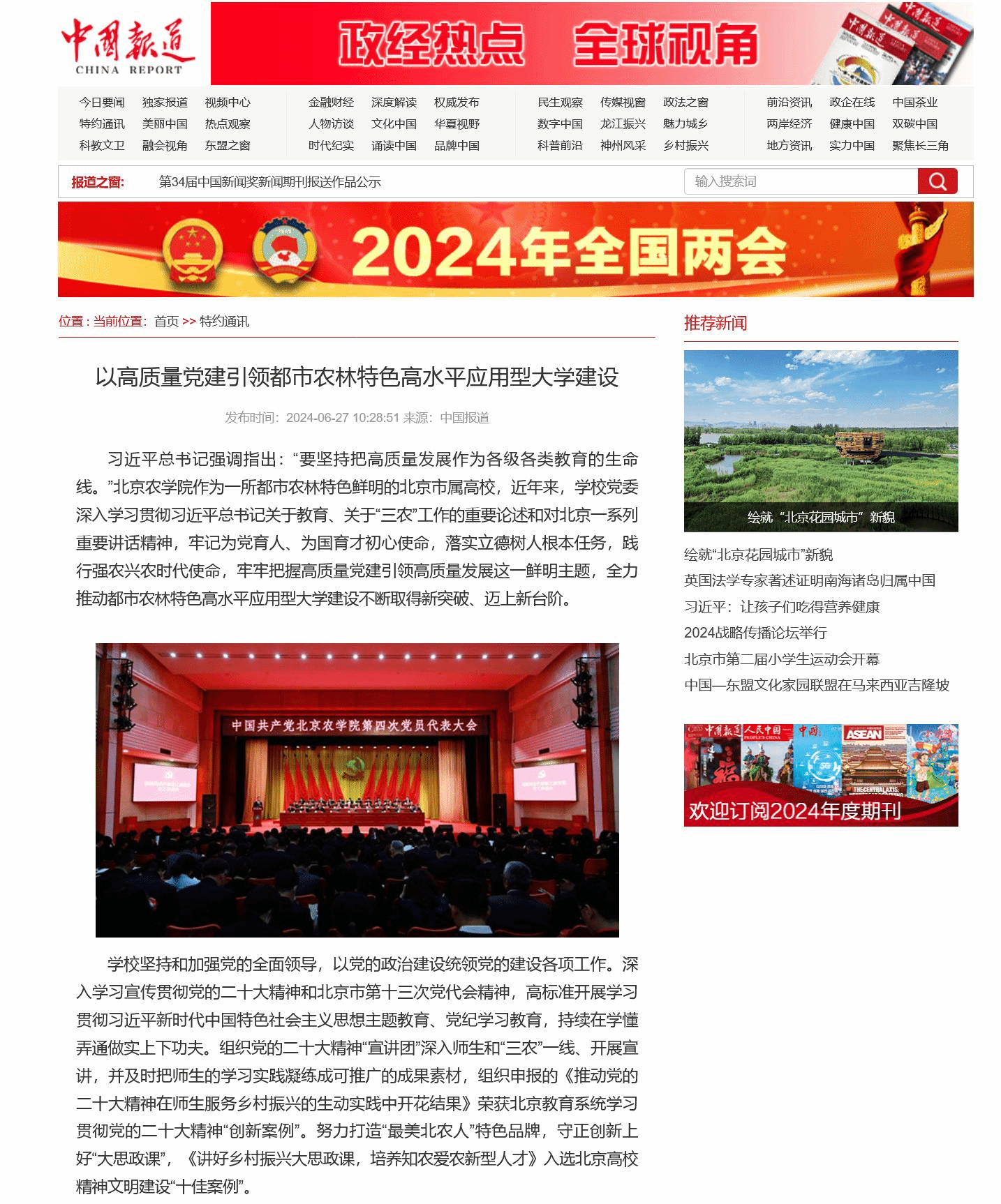 在中国共产党成立103周年来临之际,《中国报道》对best365以高质量党建引领都市农林特色高水平应用型大学建设的做法和成效进行专题报道。