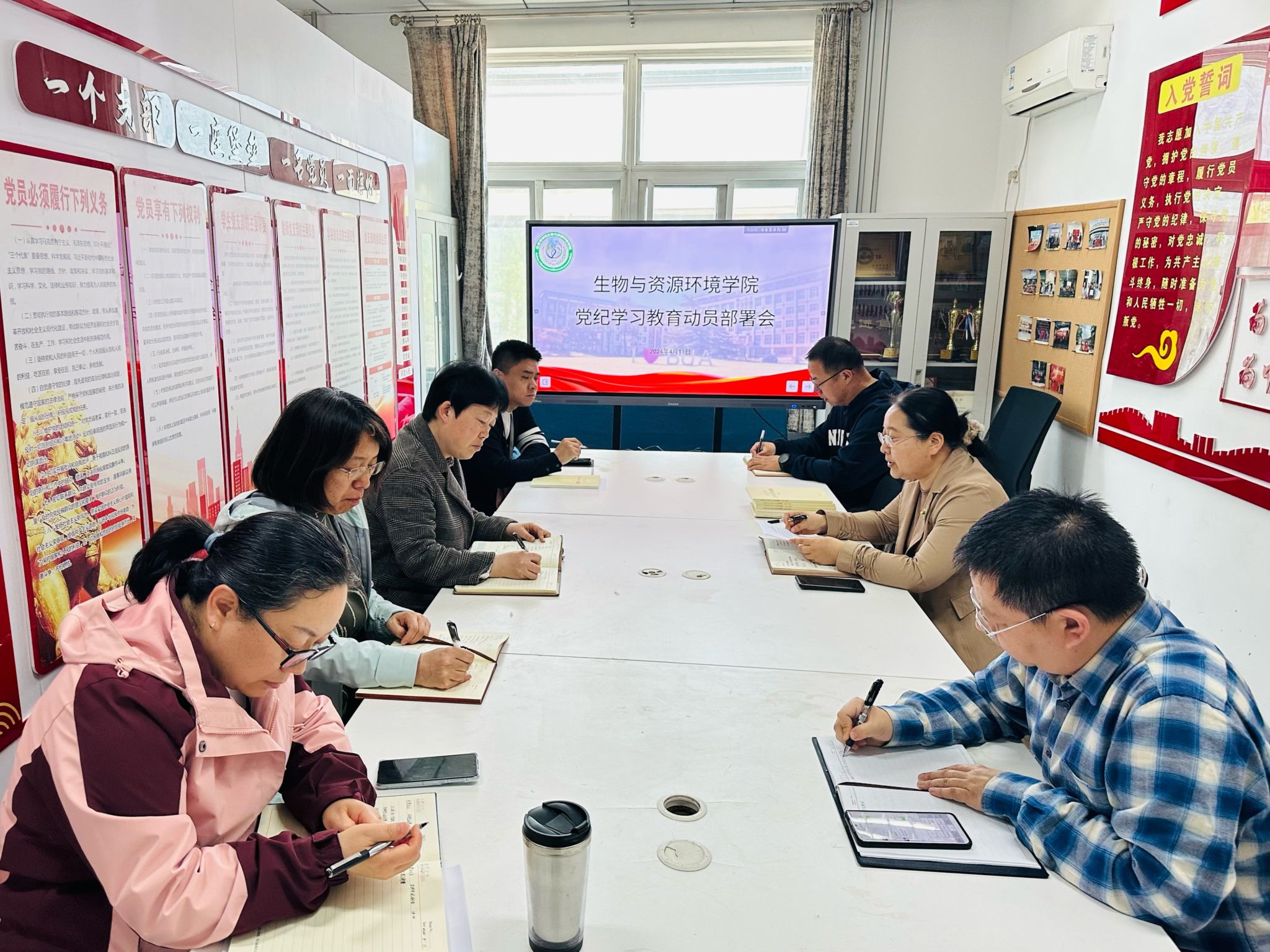 4月11日下午,生物与资源环境学院党委召开党纪学习教育动员部署会,部署学院党纪学习教育工作。学院领导班子成员、师生党支部书记参会。会议由学院党委书记袁中立主持。