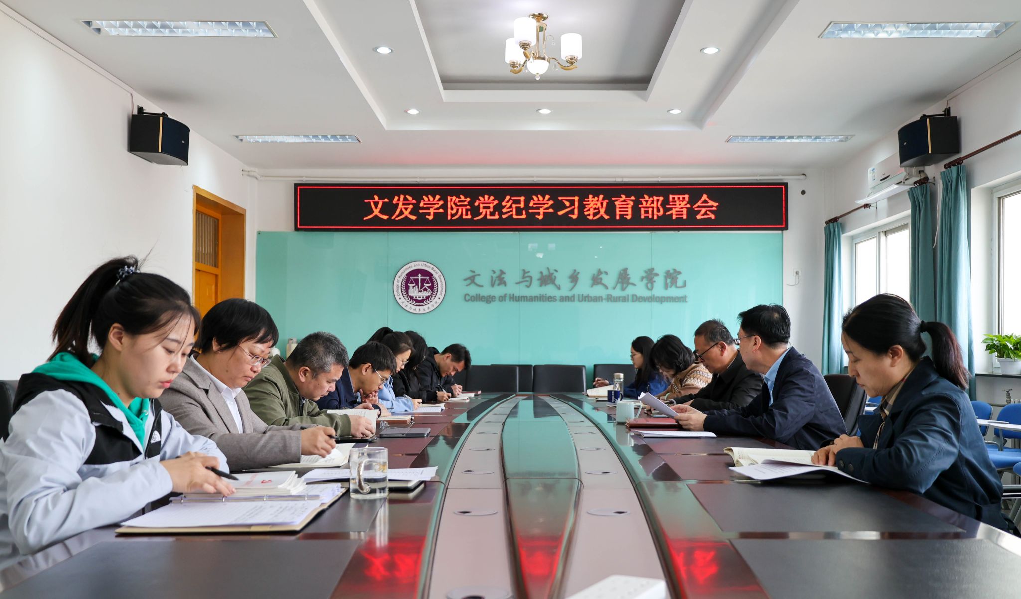 4月15日上午,文法与城乡发展学院党委召开党支部书记例会,传达学习习近平总书记重要讲话,学习中央办公厅《关于在全党开展党纪学习教育的通知》、中央关于印发《中国共产党纪律处分条例》的通知,传达学校党纪学习教育动员部署会精神,部署党纪学习教育相关工作,为开展党纪学习教育打牢思想基础。