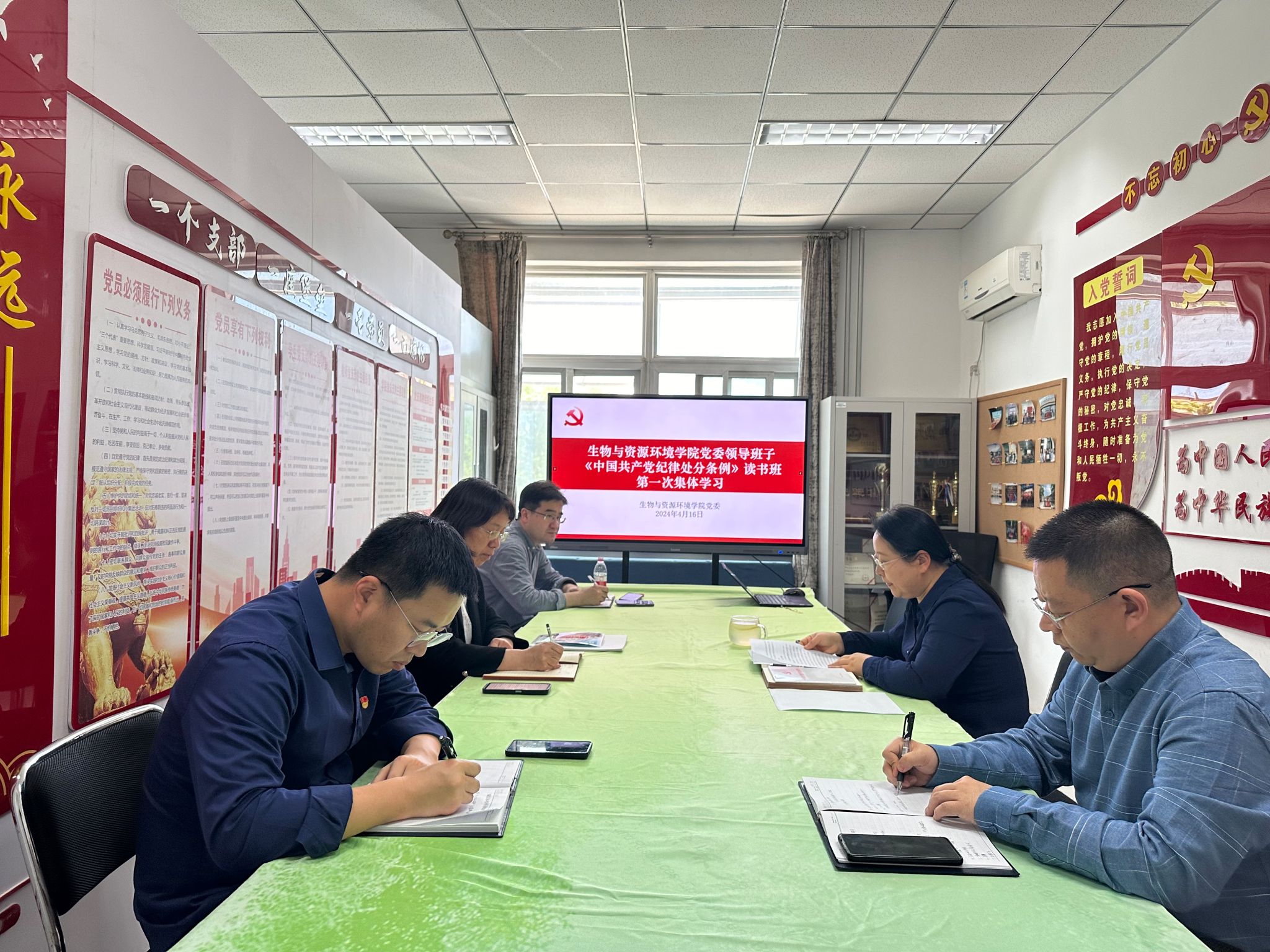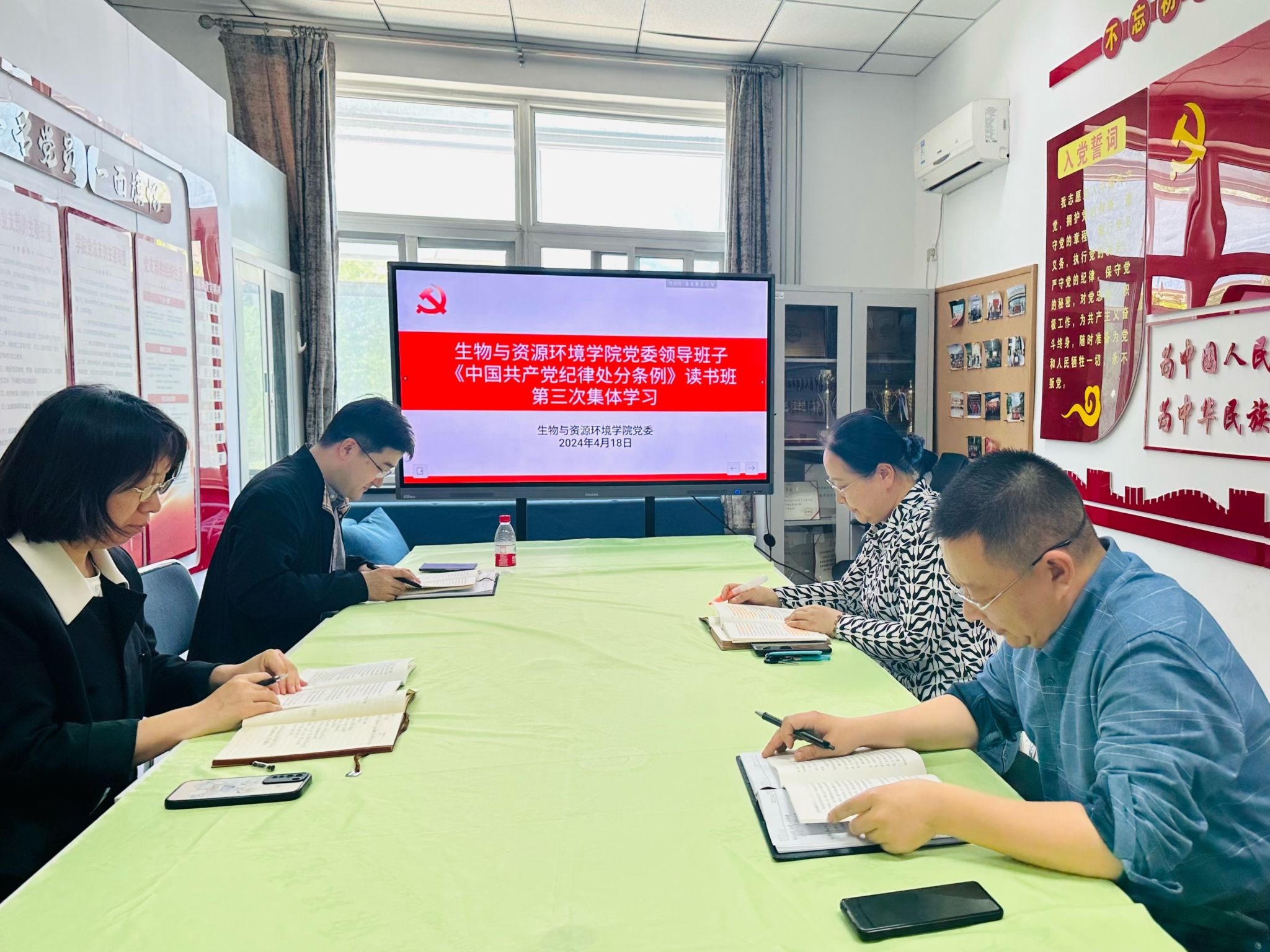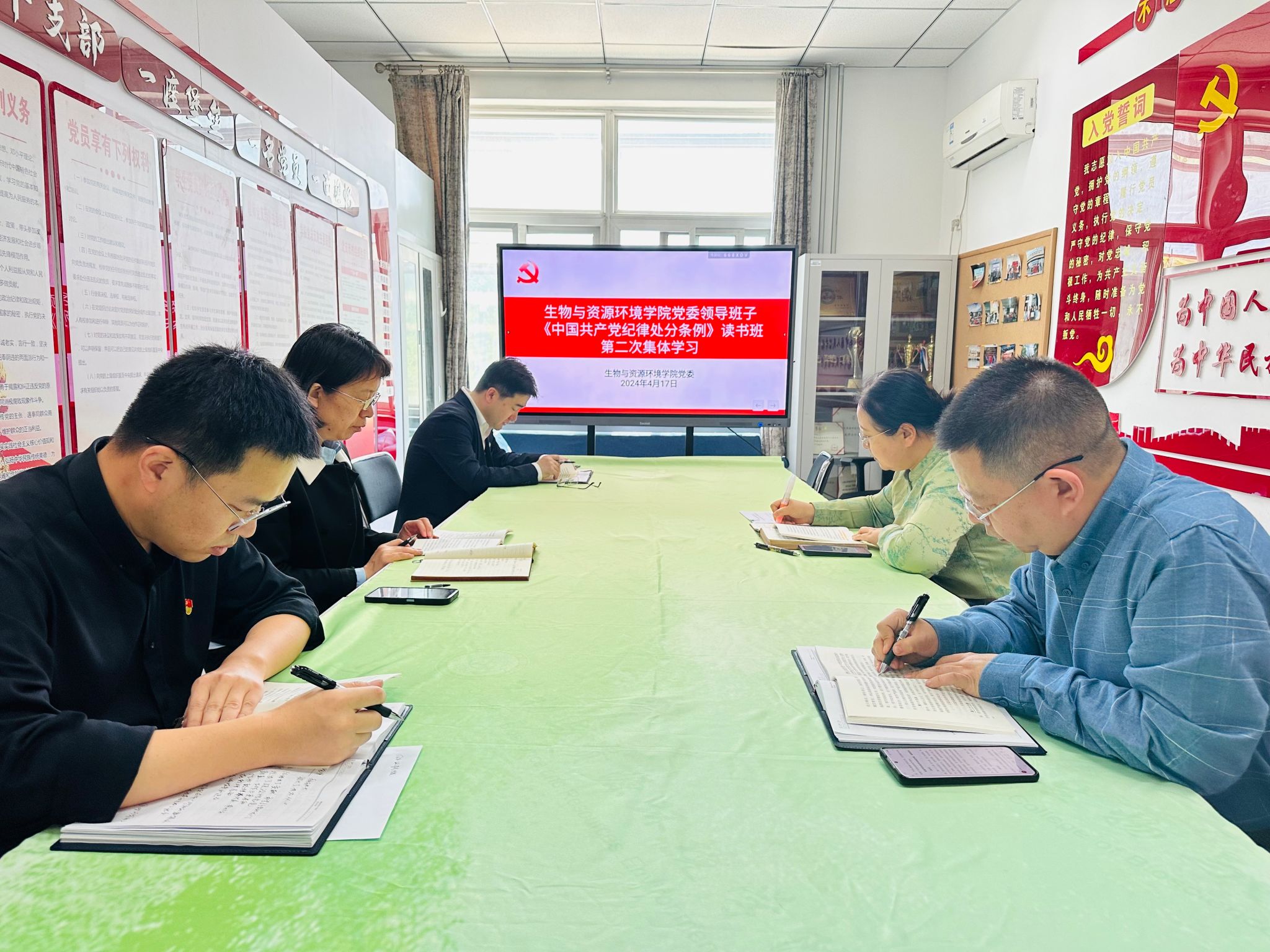 4月16日至18日生物与资源环境学院党委举办理论学习中心组成员党纪学习教育读书班。读书班由党委书记袁中立主持,领导班子成员、党委委员、组织员参加。