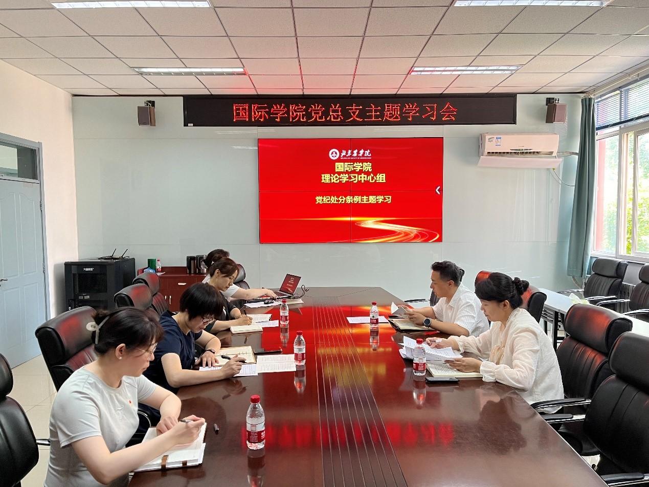 6月18日上午,国际学院党总支专题学习党的群众纪律。校党委常委、副院长武艳以普通党员身份参加集中学习,并与中心组成员交流思想感悟、畅谈学习体会。会议由党总支书记杨宝东主持。