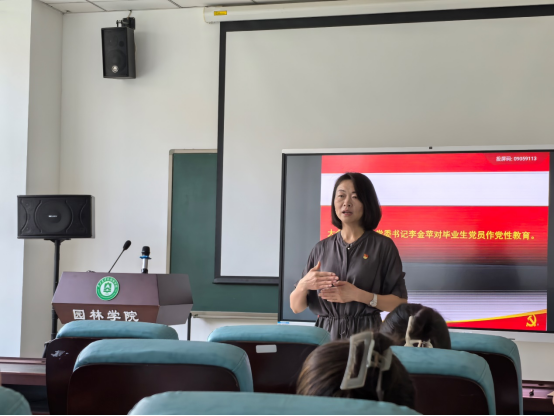 为推动党纪学习教育走深走实,进一步引导毕业生坚定理想信念,扣好廉洁从业的第一粒扣子,在新的人生阶段勇担使命责任,贡献青春力量,6月19日下午,园林学院党委在园林楼101会议室召开毕业生党员党纪学习教育暨离校教育大会,党委书记李金苹出席会议,会议由学院党委副书记、副院长张思明主持。