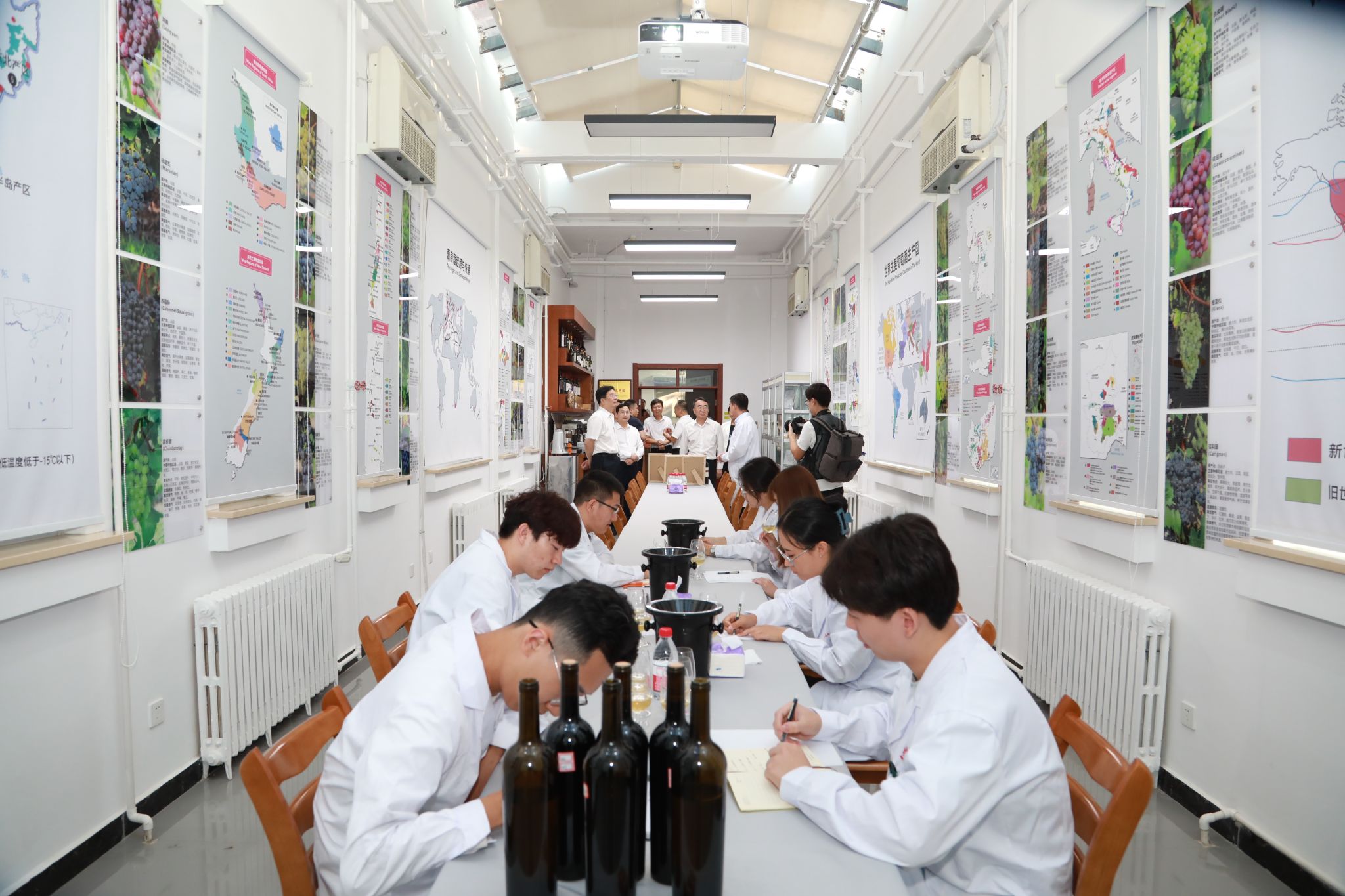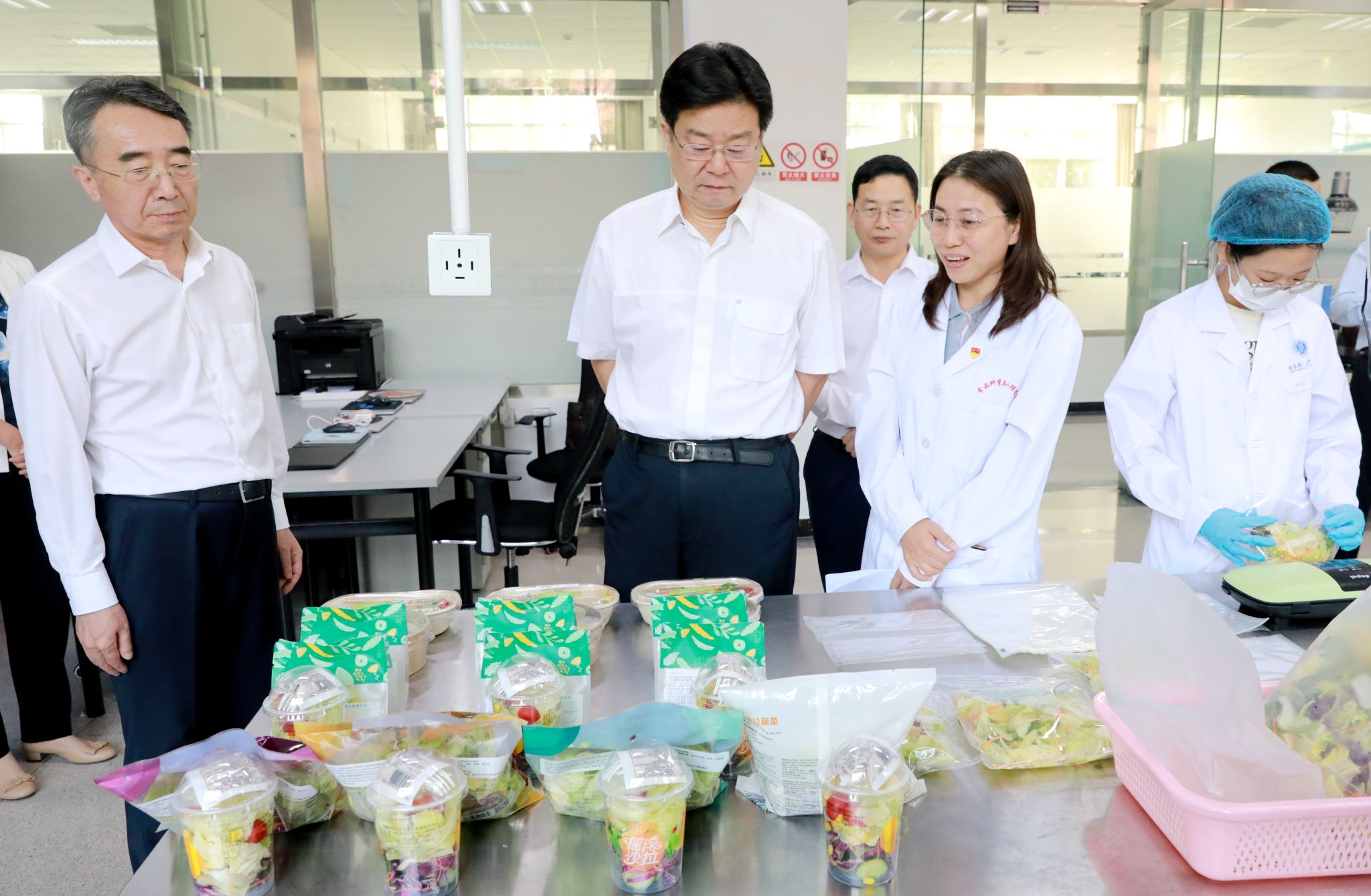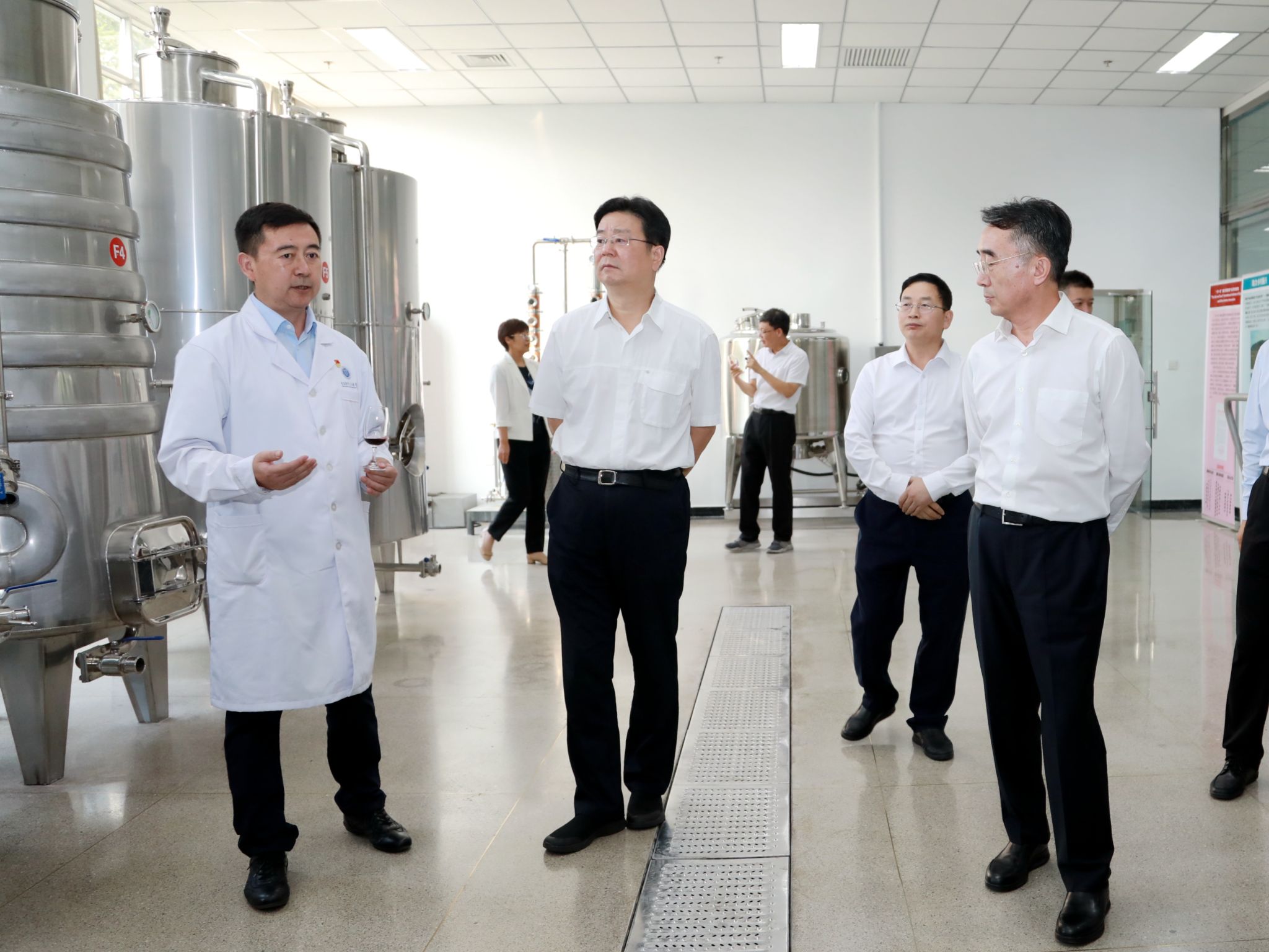 在best365官方网站食品科学与工程学院,游钧听取了学院基层党建工作情况介绍,深入了解学院党组织政治功能和组织功能发挥情况。游钧先后来到粮油加工实验室、啤酒和葡萄酒酿造中试车间、益生菌发酵中试车间、果蔬加工及贮藏实验室,参观了师生依托学科专业优势制作的特色烘焙作品、运用太空诱变筛选出的优良酵母菌与企业合作开发的“太空啤酒”、自主研发的荣获“布鲁塞尔国际葡萄酒大赛金奖”的“北农庄园”葡萄酒,详细了解了学校教师制定鲜切蔬菜领域首个“国标”《鲜切果蔬生产卫生规范》、深耕鲜切果蔬保鲜领域取得的成果以及益生菌发酵技术科技成果转化情况。了解了学校承担的“一带一路国际葡萄与葡萄酒产业科技创新院”平台建设情况,以及国家留学基金委乡村振兴葡萄与葡萄酒国际人才培养项目推进情况。