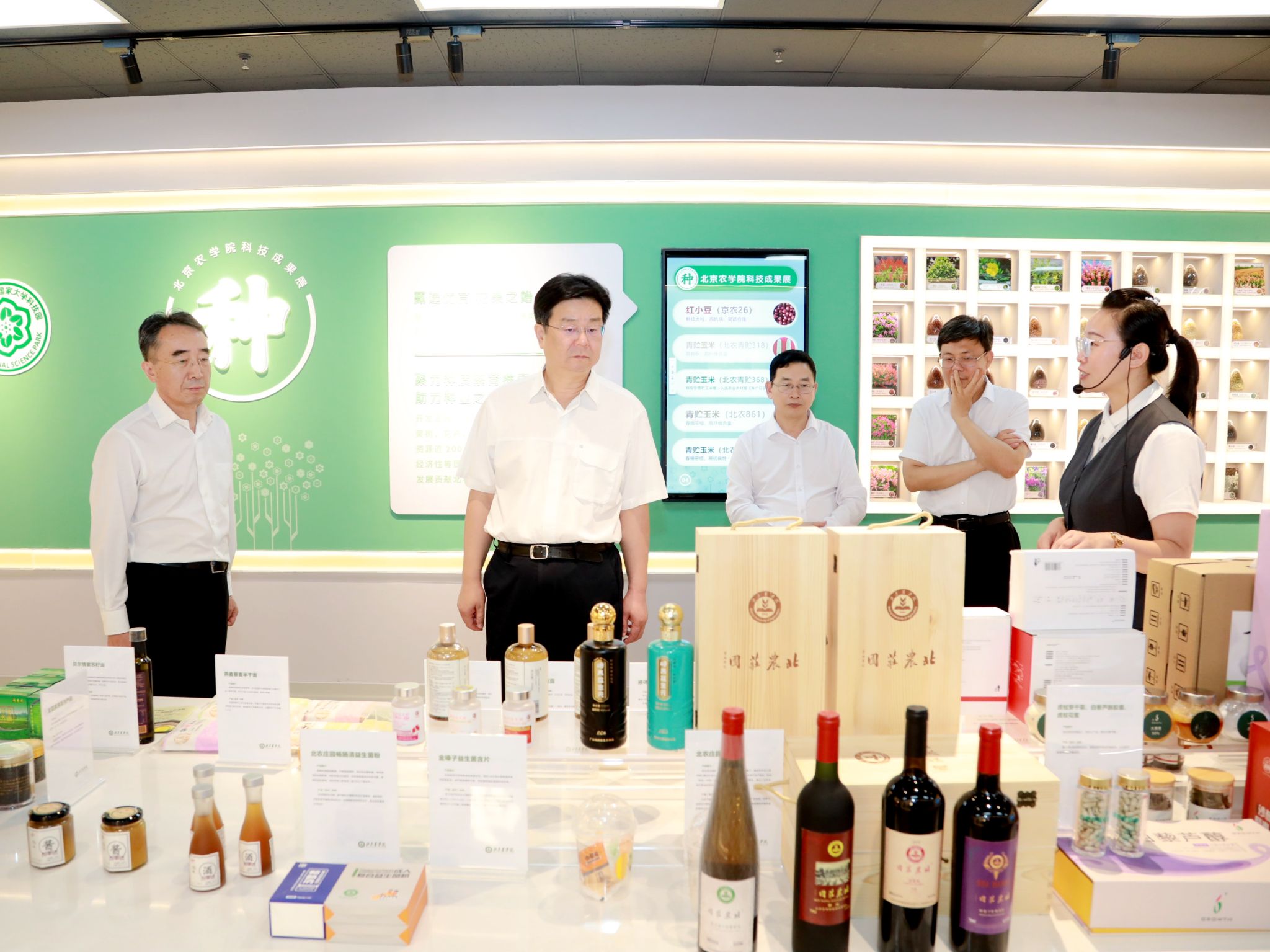 在best365官方网站都市农业发展区,游钧听取了植物科学技术学院发挥师生党员先锋模范作用,主动服务新时代首都发展的做法和成效。深入了解学院发挥自身学科专业优势,服务北京现代高效设施农业、休闲农业,解决种业卡脖子技术取得的成果。游钧在“四季丰收节·秋之韵”师生作品前驻足,了解了风味番茄、高端食用菌等科技小院和博士农场的产品。