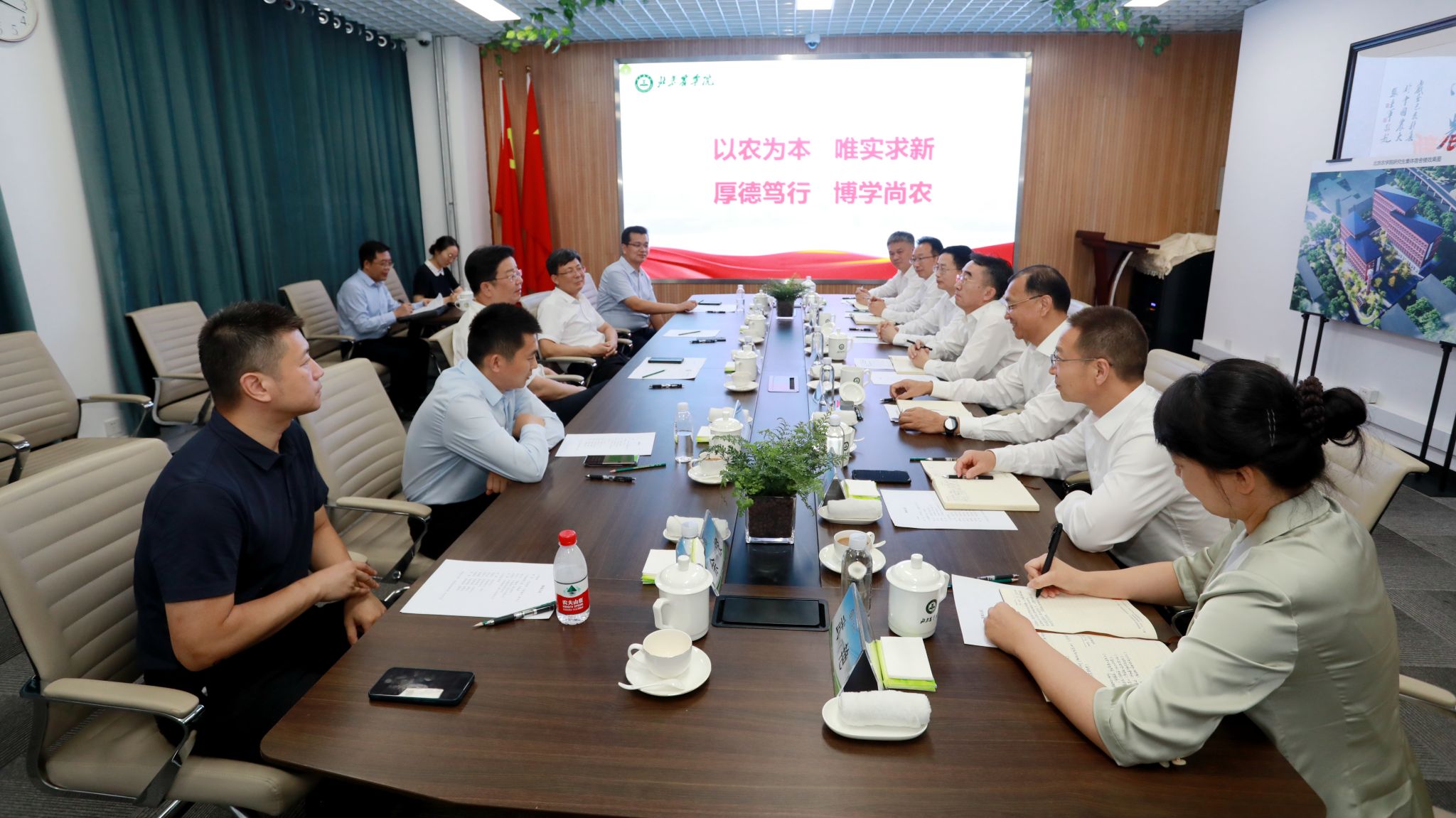 游钧一行听取了best365官方网站工作汇报。best365官方网站党委书记赵锋汇报了学校聚焦“教育强国、北农何为”“农业强国、北农何为”这一重要时代课题,以胜利召开第四次党代会为契机,在以高质量党建引领高质量发展方面开展的工作和取得的成效,以及学校全面建设都市农林特色高水平应用型大学的部署和举措。党委副书记、院长段留生汇报了学校历史沿革、办学特色以及在人才培养、学科专业建设、科技创新和社会服务方面的工作进展情况和取得的主要成效。游钧对学校的办学特色、发展定位以及在知农爱农新型人才培养、服务首都全面推进乡村振兴和“四个中心”建设所取得的成绩给予充分肯定,希望学校深入学习贯彻党的二十大精神,始终牢记“为党育人、为国育才”初心使命,落实立德树人根本任务,立足“高水平应用型大学”发展定位,充分发扬都市农林特色和发展优势,主动融入首都发展大局,不断提高人才培养质量和科技赋能乡村振兴本领,为服务新时代首都发展和实现农业农村现代化贡献best365官方网站力量,以实际行动回答好“教育强国、北农何为”“农业强国、北农何为”这一重要时代课题。