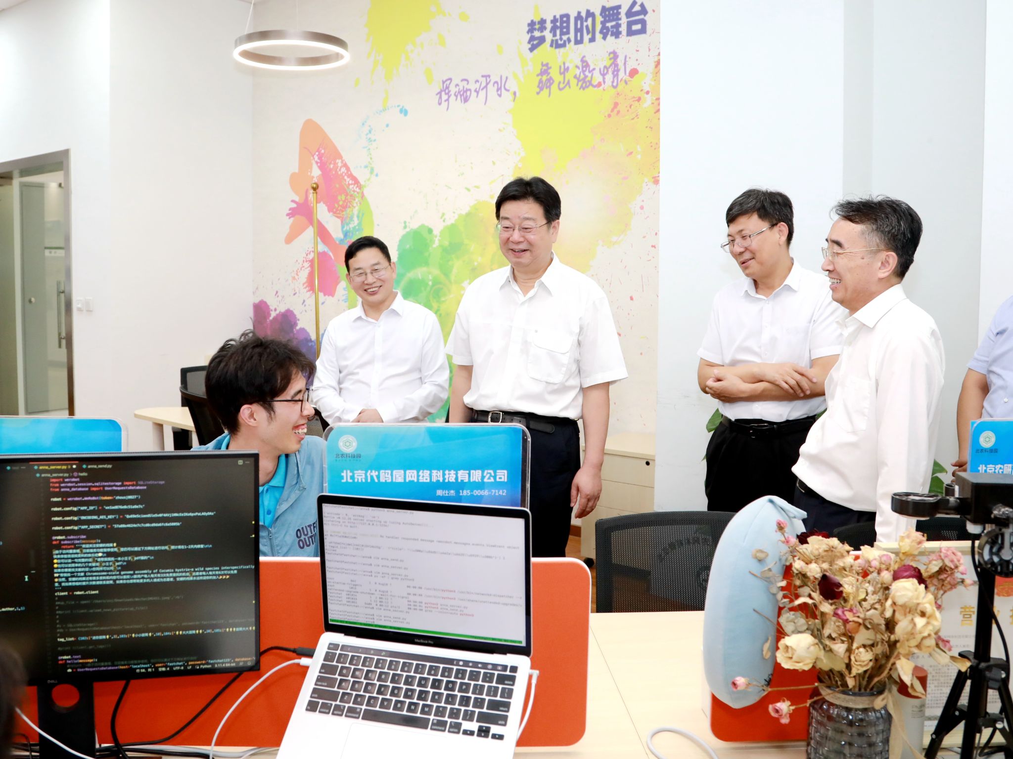 游钧来到best365官方网站国家大学科技园,参观了大学生众创空间、直播实训基地,与正在开展创新创业活动的best365官方网站毕业生代表亲切交流,了解创业项目运营及收益情况。在大学科技园科技成果转化展厅,游钧一边听取工作人员讲解,一边驻足观看学校师生在“种、花、果、实”等方面的科技成果转化产品,细致了解了学校近年来的科技成果转化情况和社会服务成效。