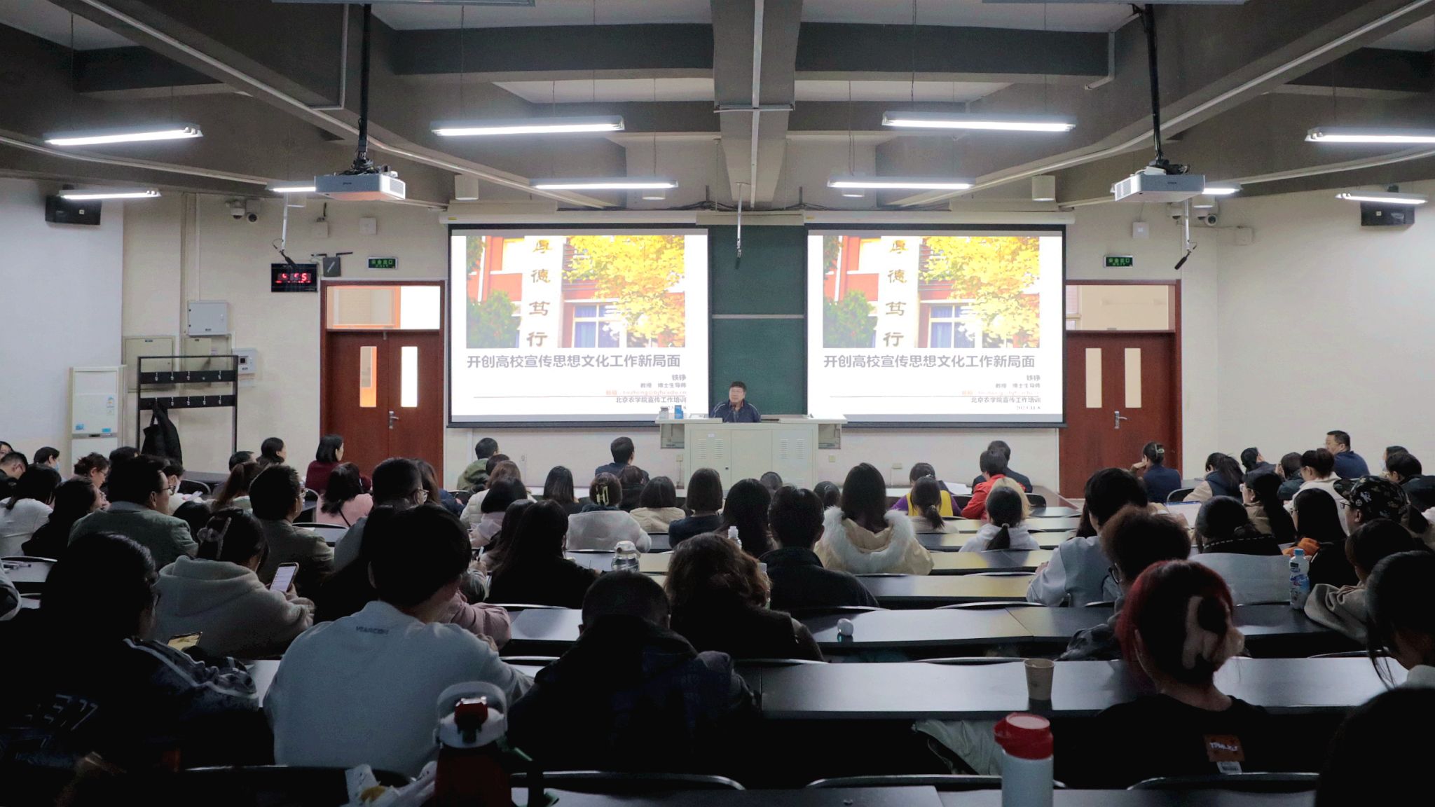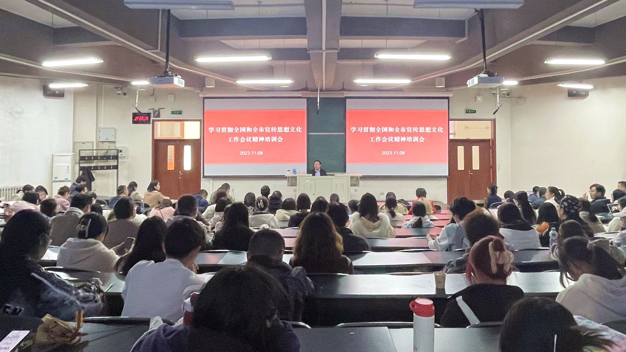 11月6日至7日,全市宣传思想文化会议召开,校领导段留生、仲丛生代表学校参加会议。会议召开后,学校于11月8日下午组织召开专题学习和培训会,传达学习全市宣传思想工作会议精神和市委书记尹力同志讲话精神,邀请专家进校为学校宣传思想文化工作岗位上的广大干部和大学生记者团成员,作《开创高校宣传思想文化工作新局面》的专题辅导报告,进一步强化大家对新时代新形势下宣传思想文化工作极端重要性的认识,增强做好学校宣传思想文化工作的责任感和紧迫感,提升做好宣传思想文化工作的能力和本领,齐心协力为高质量发展营造良好氛围与环境。