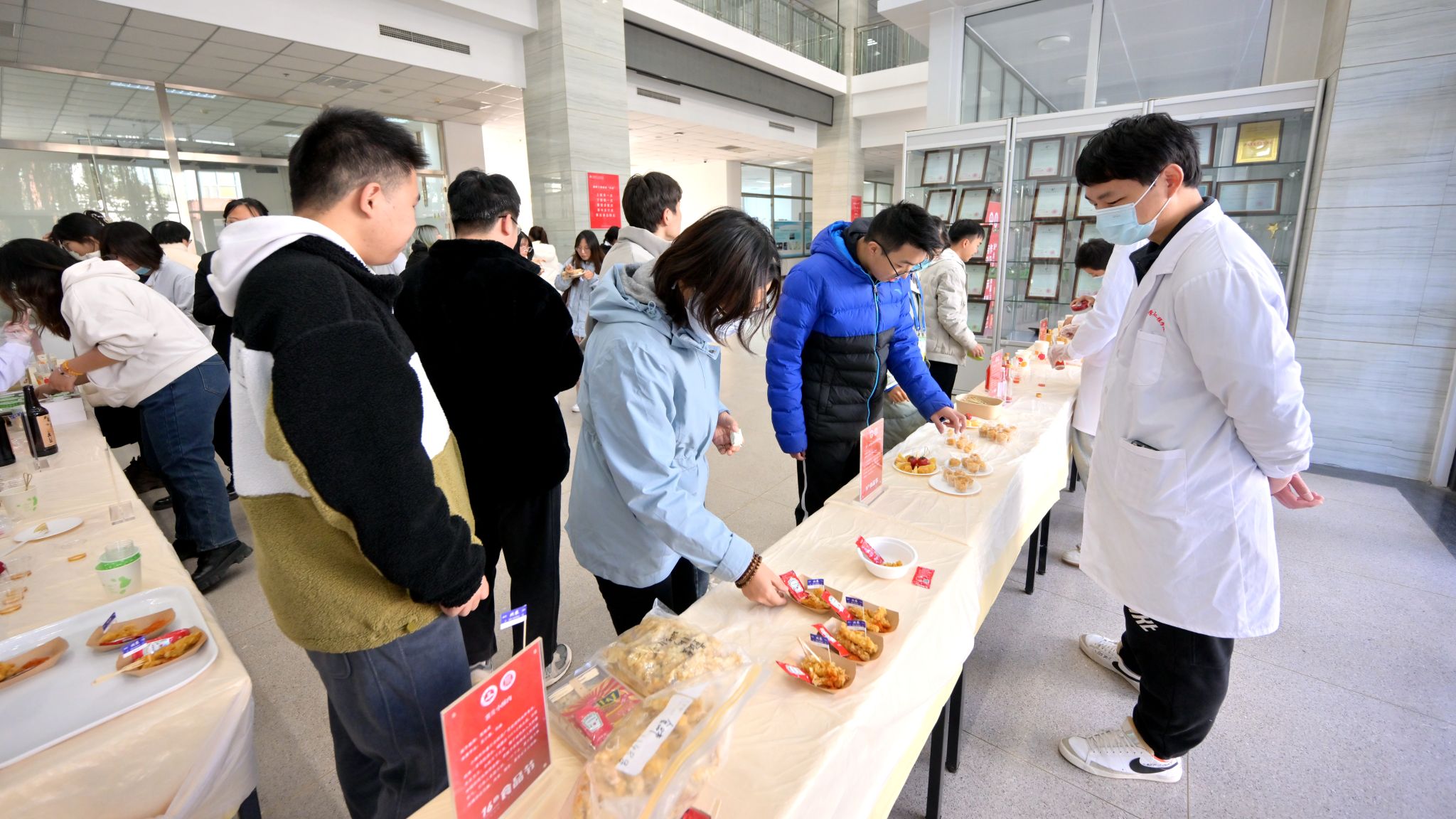本届食品节设置了专题学术报告、特色主题党日以及创意美食展示等活动。创意美食展示区吸引众多师生驻足品尝,“板栗也能做成酒?还有烤栗子的香味?看了介绍,我就迫不及待想尝一尝。”“薯片小酥肉真的达到‘1+1>2’的效果,酥脆鲜香。”“我最喜欢桃桃芝士冻,颜值高、味道好。”大家对师生的“作品”给予充分肯定。