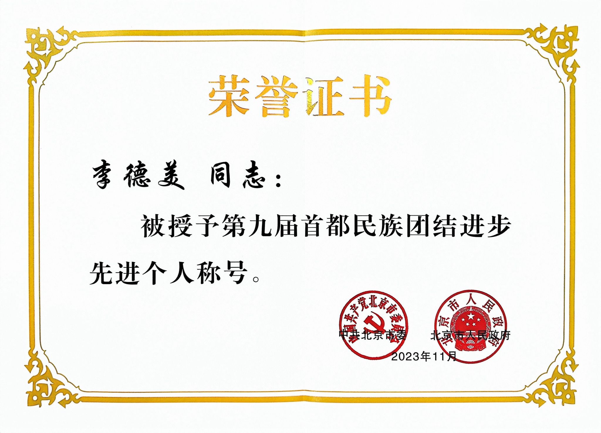 据悉,“首都民族团结进步奖”由北京市委、北京市人民政府主办,是北京市民族领域的最高荣誉称号,每五年评选表彰1次。本届评选表彰突出铸牢中华民族共同体意识,紧紧围绕全面推进中华民族共有精神家园建设、推动各民族共同走向社会主义现代化、促进各民族交往交流交融、提升民族事务治理体系和治理能力现代化水平、坚决防范民族领域重大风险隐患这五大重点任务,对2018年以来在首都民族团结进步事业中涌现出来的先进集体和先进个人进行表彰。
