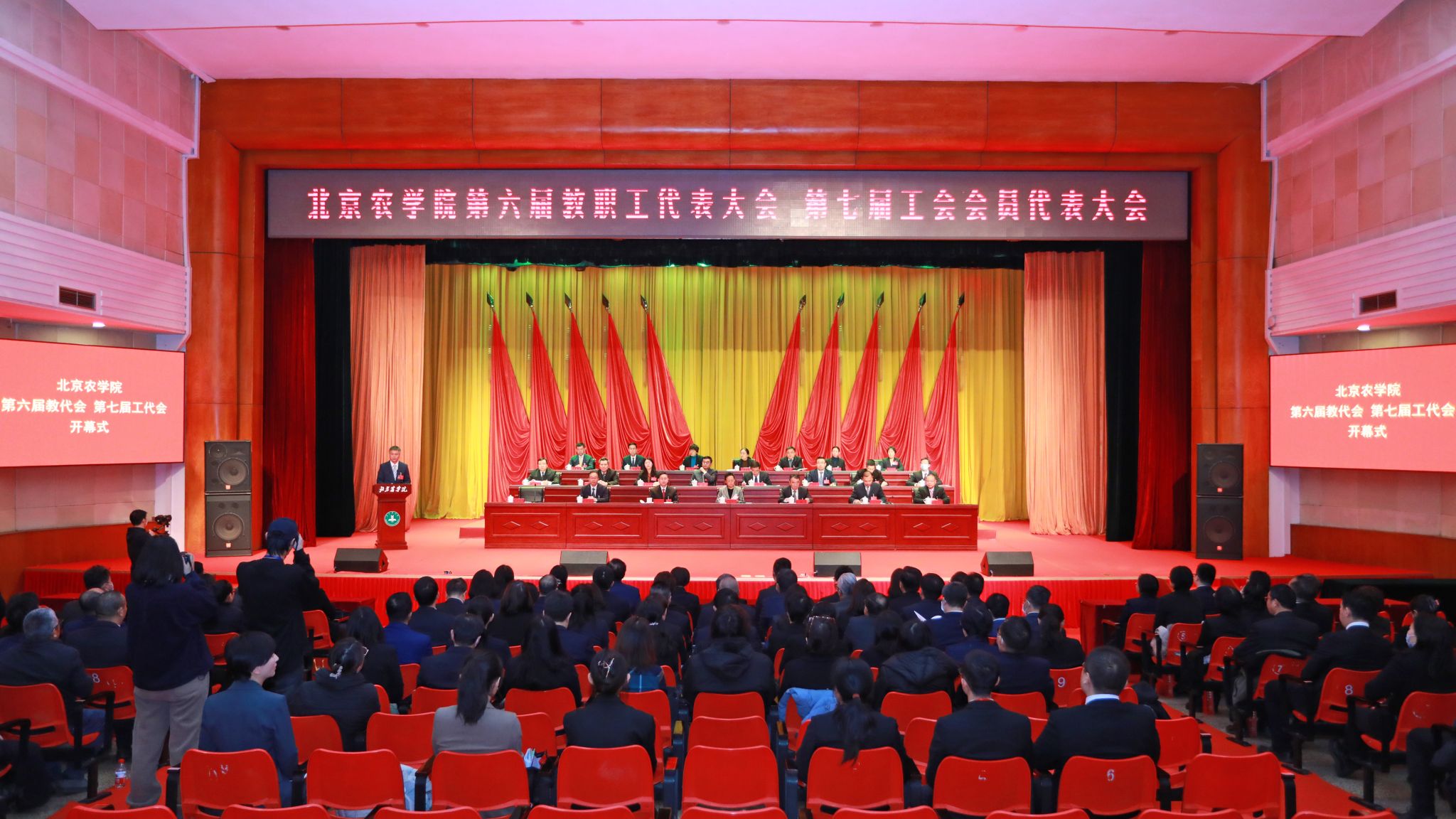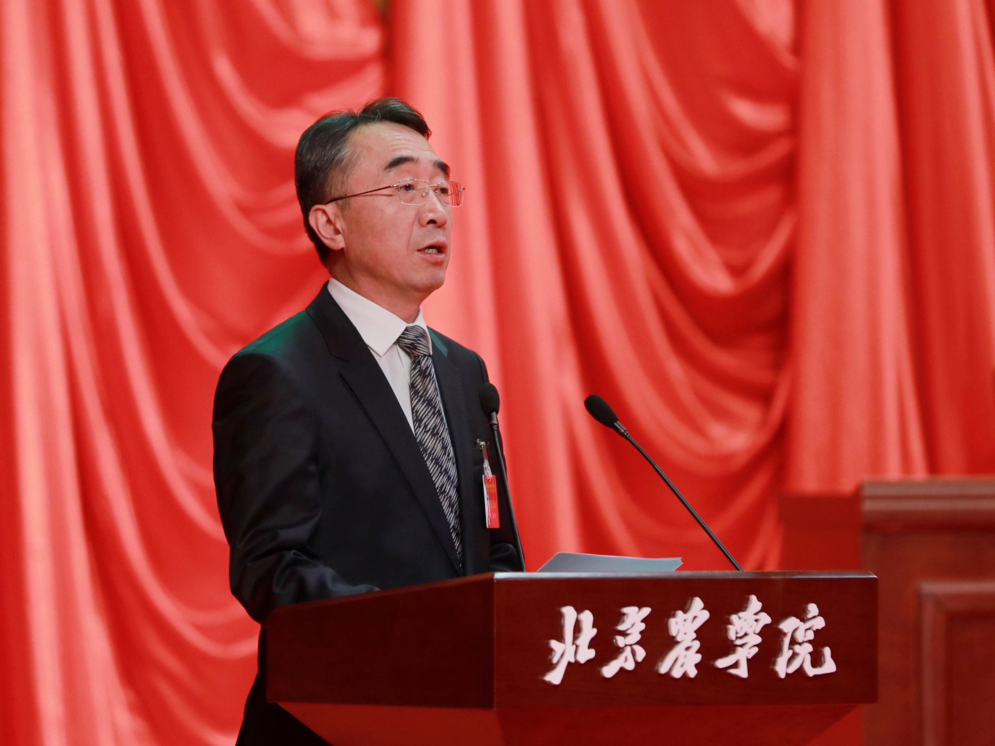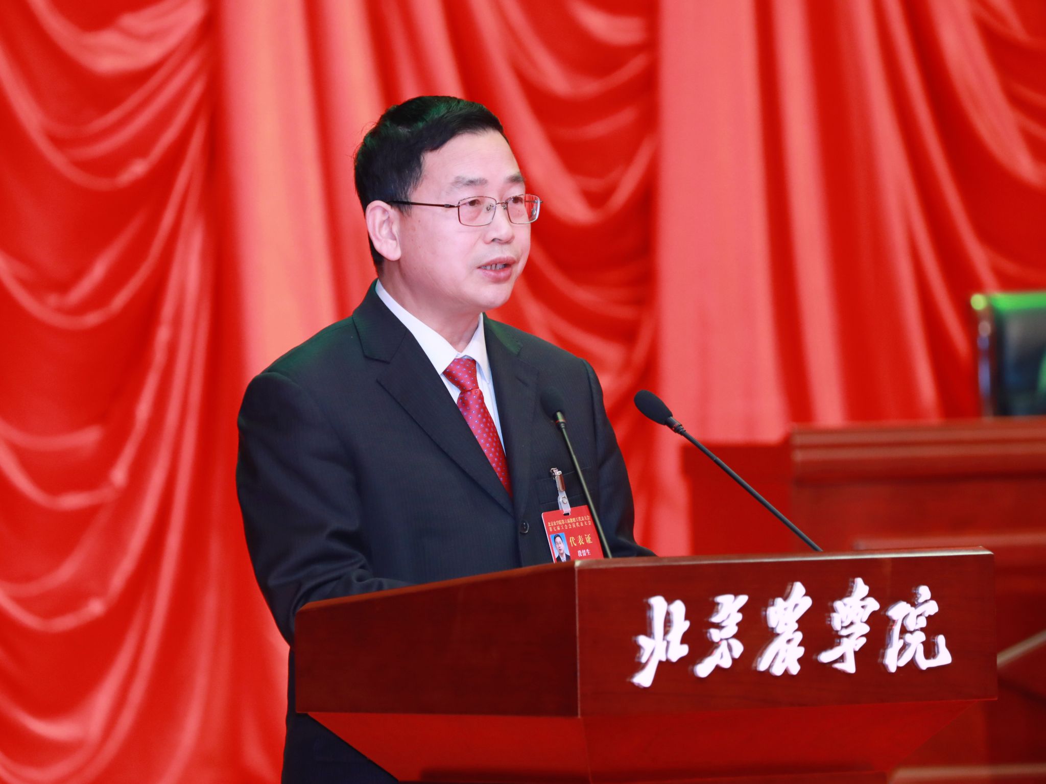 党委书记赵锋在致词中代表学校党委对当选的新一届教代会常设主席团成员、工会委员会成员及各专门委员会委员表示热烈祝贺,对全体代表认真履职尽责、积极建言献策,在共商学校高质量发展大计中展现出团结一心、奋发有为精神状态给予充分肯定,对大会筹备和召开期间全体工作人员付出的辛勤的汗水表示衷心感谢。他强调,要深入学习贯彻习近平新时代中国特色社会主义思想和党的二十大精神,牢牢把握“培养什么人、怎样培养人、为谁培养人”这一教育根本问题和建设教育强国的核心课题,全面落实立德树人根本任务,努力培养一批在全面推进乡村振兴、实现社会主义现代化建设中可堪大用、能担重任的栋梁之才。要始终牢记“强国必先强农,农强方能国强”的深刻道理和实践要求,坚决扛起强农兴农时代重任,以“功成不必在我、功成必定有我”的胸怀和担当贯彻落实第四次党代会精神、全面推动学校事业高质量发展。要切实加强党对工会工作的全面领导,不断加强教代会工会自身建设,全面增强工会组织的引领力、组织力、服务力,切实把工会组织建设成为党的群众工作的坚强阵地,团结凝聚广大教职工为早日建成国内一流、国际知名的都市农林特色高水平应用型大学而团结奋斗,为服务新时代首都发展、“四个中心”建设和全面推进乡村振兴做出更大贡献,以实际行动回答好“教育强国,北农何为”“农业强国,北农何为”“科技强国,北农何为”这一重要时代课题。