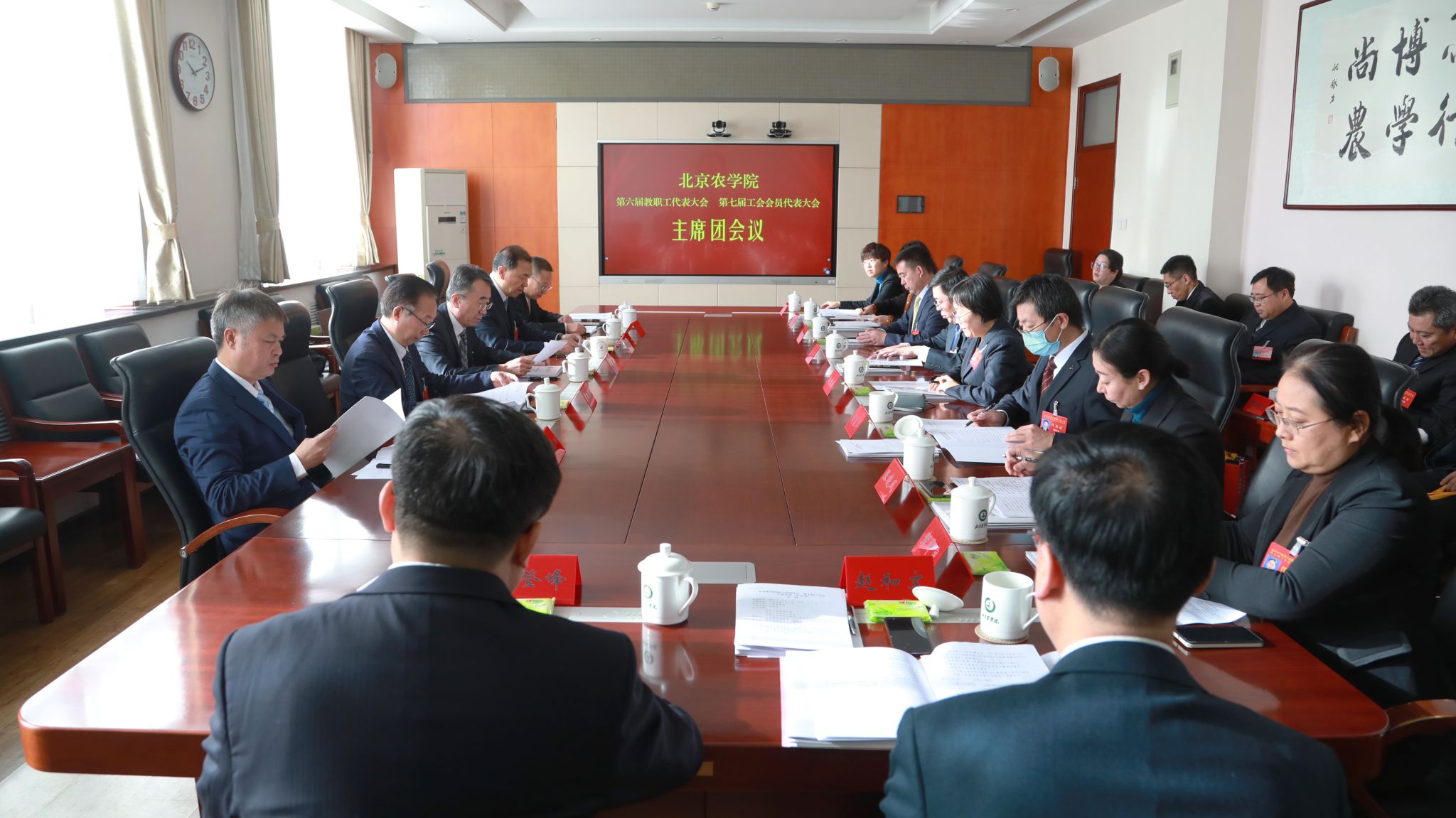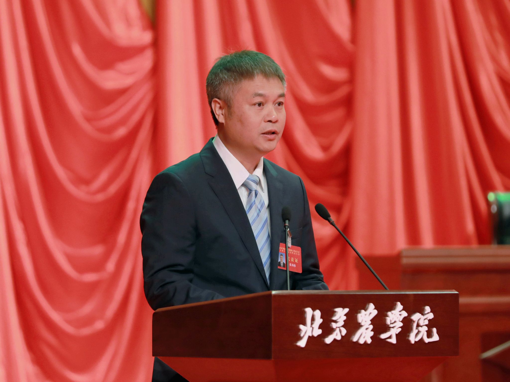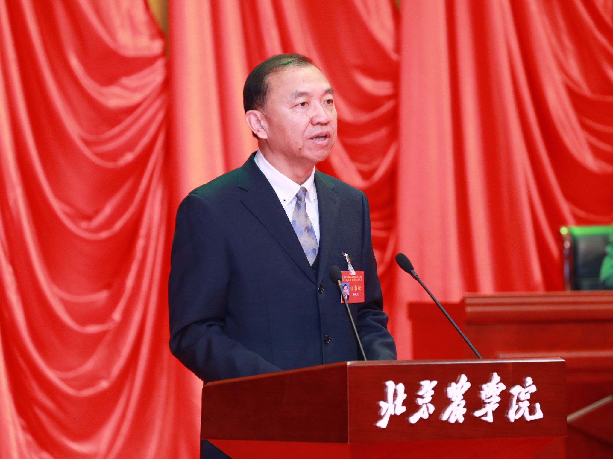 党委书记赵锋在致词中代表学校党委对当选的新一届教代会常设主席团成员、工会委员会成员及各专门委员会委员表示热烈祝贺,对全体代表认真履职尽责、积极建言献策,在共商学校高质量发展大计中展现出团结一心、奋发有为精神状态给予充分肯定,对大会筹备和召开期间全体工作人员付出的辛勤的汗水表示衷心感谢。他强调,要深入学习贯彻习近平新时代中国特色社会主义思想和党的二十大精神,牢牢把握“培养什么人、怎样培养人、为谁培养人”这一教育根本问题和建设教育强国的核心课题,全面落实立德树人根本任务,努力培养一批在全面推进乡村振兴、实现社会主义现代化建设中可堪大用、能担重任的栋梁之才。要始终牢记“强国必先强农,农强方能国强”的深刻道理和实践要求,坚决扛起强农兴农时代重任,以“功成不必在我、功成必定有我”的胸怀和担当贯彻落实第四次党代会精神、全面推动学校事业高质量发展。要切实加强党对工会工作的全面领导,不断加强教代会工会自身建设,全面增强工会组织的引领力、组织力、服务力,切实把工会组织建设成为党的群众工作的坚强阵地,团结凝聚广大教职工为早日建成国内一流、国际知名的都市农林特色高水平应用型大学而团结奋斗,为服务新时代首都发展、“四个中心”建设和全面推进乡村振兴做出更大贡献,以实际行动回答好“教育强国,北农何为”“农业强国,北农何为”“科技强国,北农何为”这一重要时代课题。
