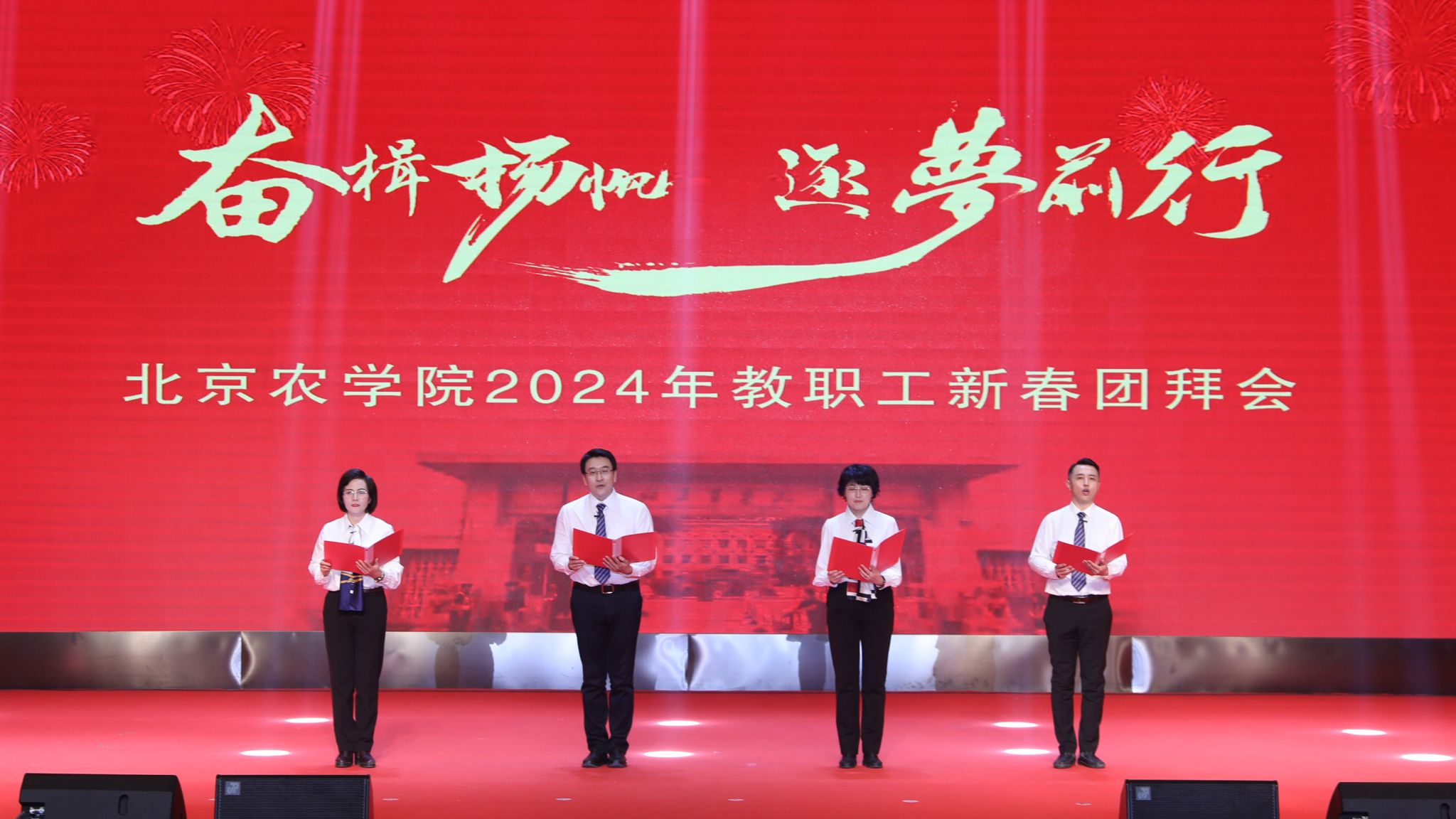 新春又一年,北农启新篇。1月17日下午,学校在礼堂举办2024年教职工新春团拜会。全体校领导与学校师生欢聚一堂,共贺新春。