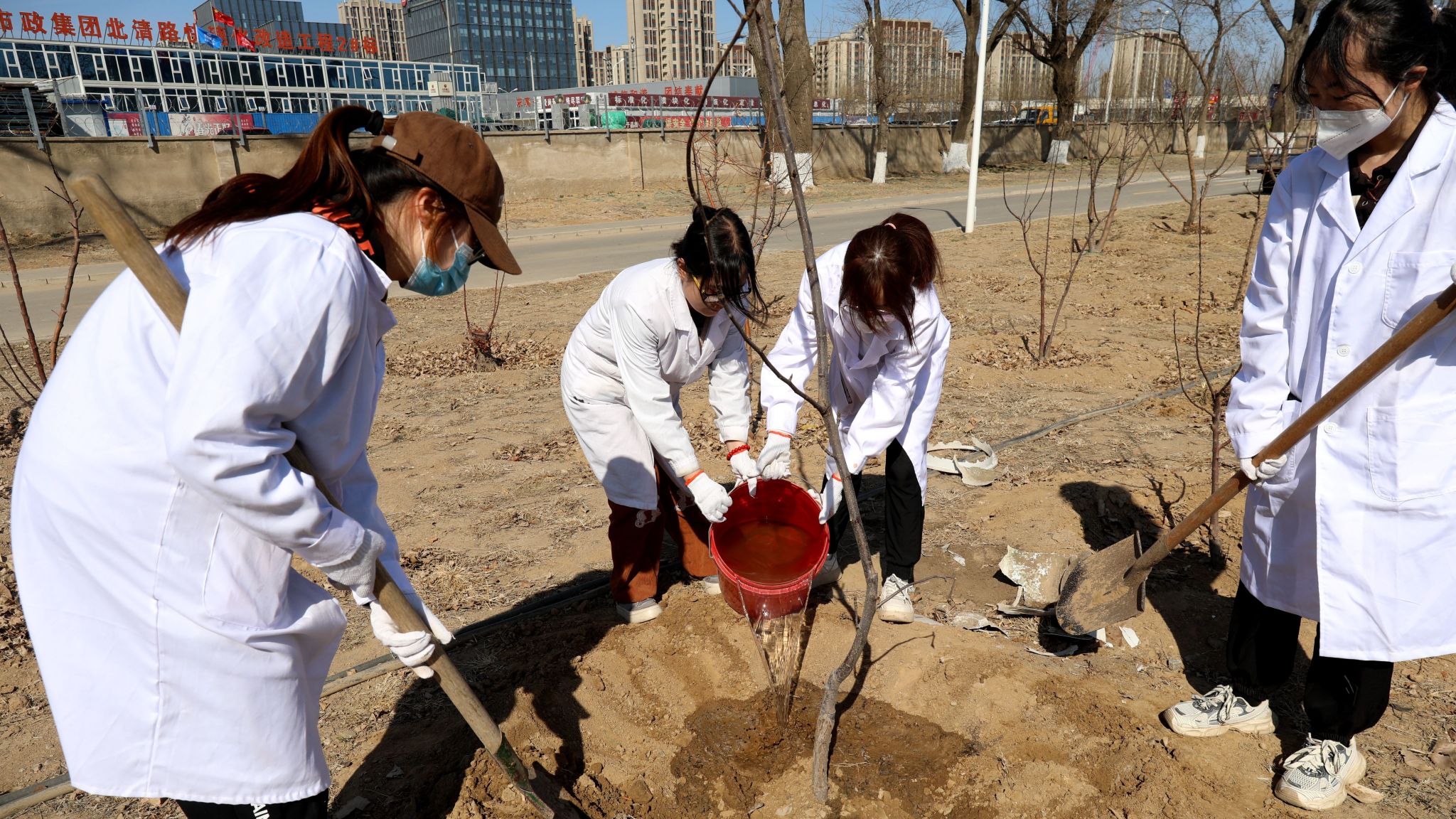 “今天我们一起种的树很特殊,它们既是可以帮助京郊果农增产增收的果树,也是见证同学们成长的‘目标树’。”3月12日下午,在学校校内实践基地,植物科学技术学院“全国研究生样板党支部”园艺研究生1支部的20名研究生党员和2023级园艺1班的33名本科生,在张卿副教授的带领下一起种下百余棵苹果树、桃树、杏树和李子树。