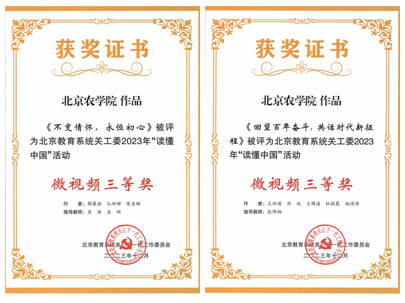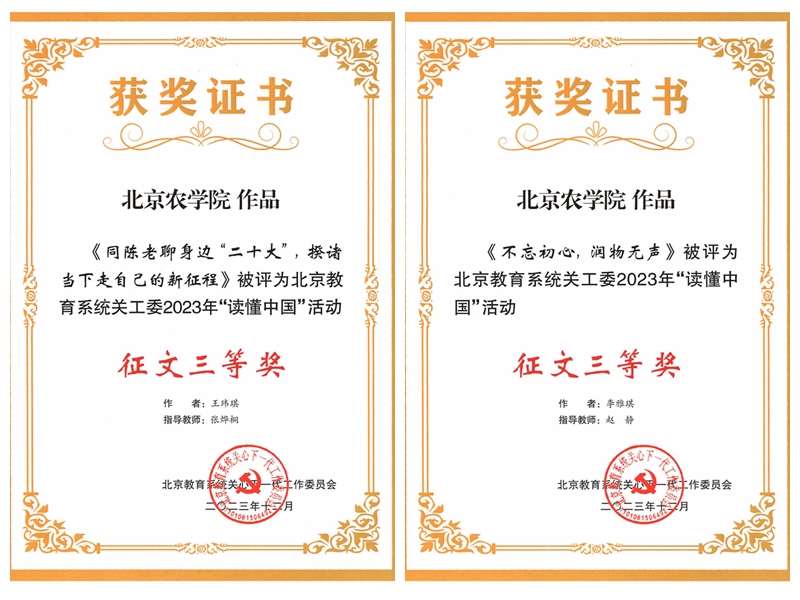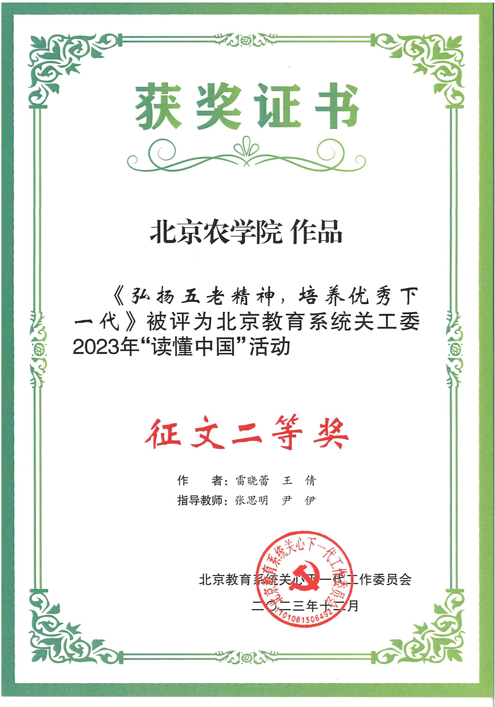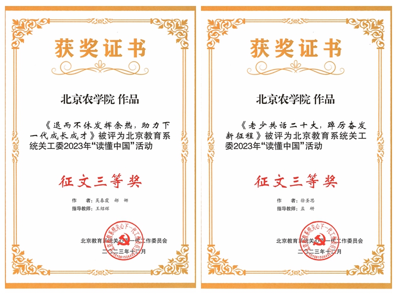 在2023年“读懂中国”活动中,best365关工委获得优秀组织奖;一篇征文获得二等奖,四篇征文获得三等奖;两个微视频获得二等奖,两个微视频获得三等奖。