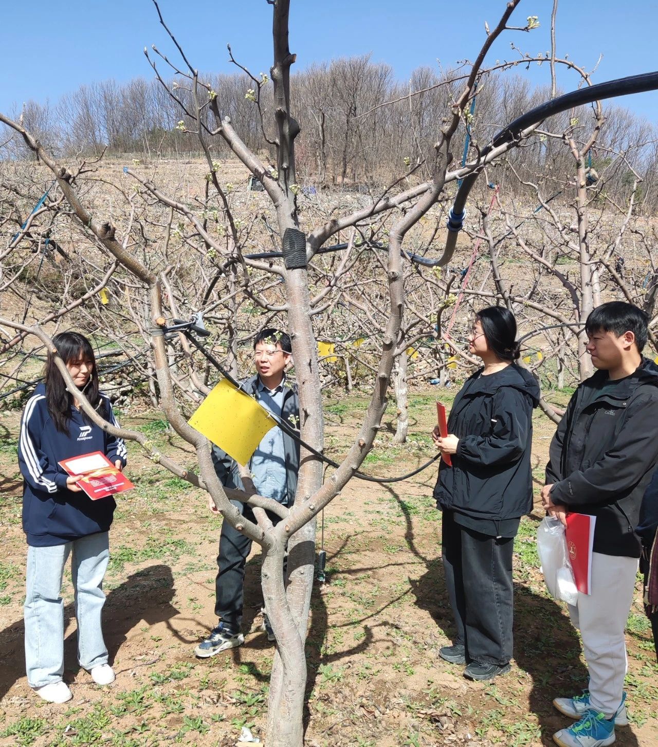 近日,植物科学技术学院曹庆芹教授带领团队在平谷区大华山镇挂甲峪科技小院和博士农场指导当地果农开展果园春季管理和整形修剪,并与平谷区果品产业服务中心、村镇负责人和技术骨干座谈交流。