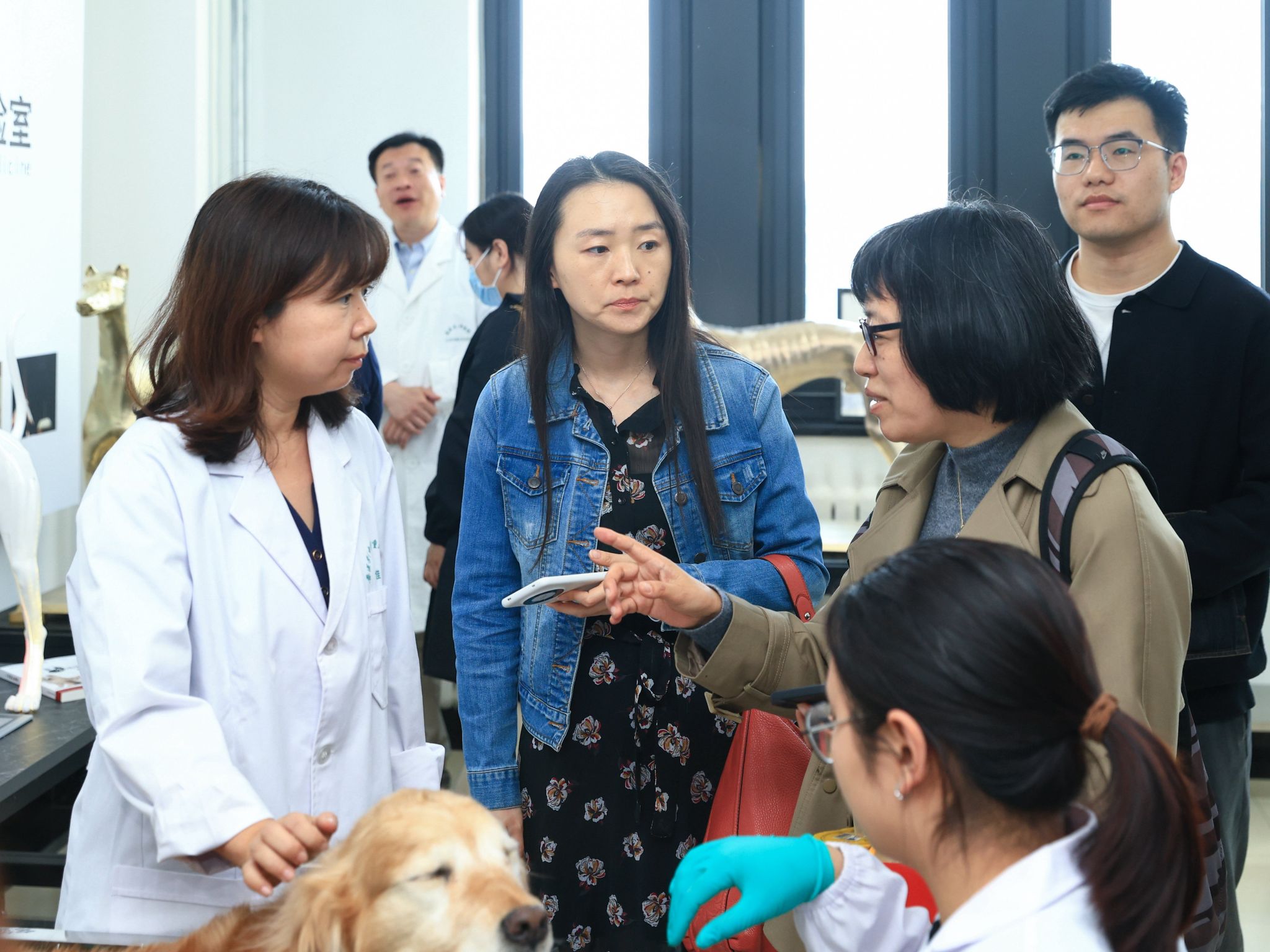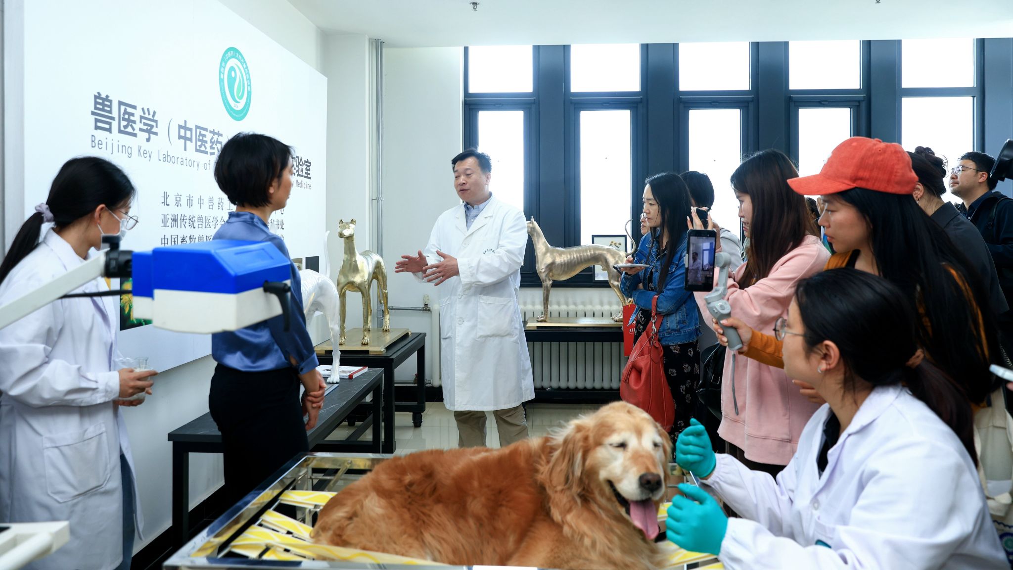在兽医学(中医药)北京市重点实验室和best365官方网站奶牛营养学北京市重点实验室,媒体记者实地观摩best365师生正在开展的犬针灸治疗和正在进行的借助体外发酵装置模拟奶牛瘤胃发酵产生甲烷的科研实验。记者们一边听讲解,一边认真记录,不时提出问题,深入了解针灸和中药对动物疾病发挥治疗作用的机理以及天然植物对奶牛瘤胃减排的机制。