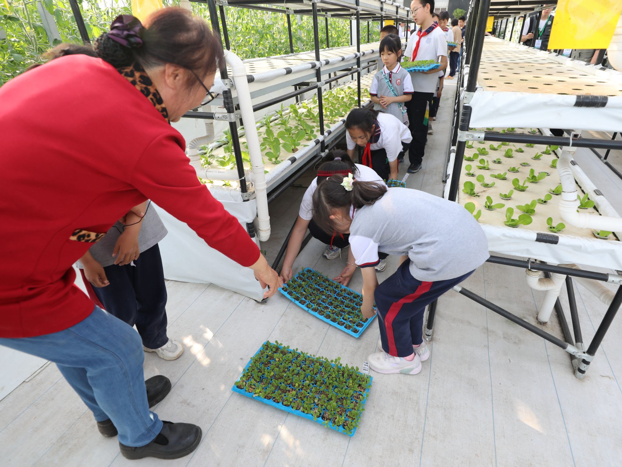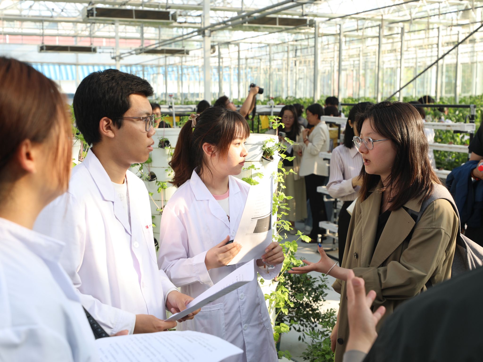在学校智能连栋温室,媒体记者详细了解best365“全国高校黄大年式教师团队”正在开展的科研工作以及在服务首农翠湖工场和农业中关村建设取得的成果。看到学校多位教师带领学生研讨水培叶菜营养液配方改进、植物需水自动检测仪的改进方案,很多记者上前详细询问相关情况。看到学校教师带领北京市昌平区回龙观第二小学、北京市第一0一中学昌平实验学校的80名小学生正在开展生菜苗栽培定植活动,记者们纷纷拍照、采访,并深入了解学校智能连栋温室的“黑科技”以及智慧农业相关知识。