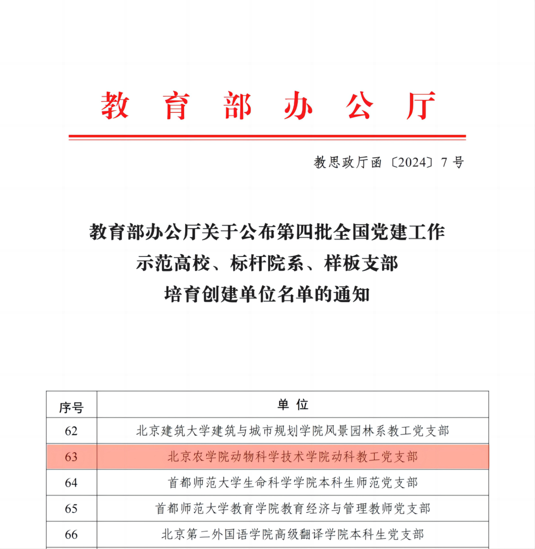 不断增强基层党组织政治功能和组织功能,落实落细基层组织工作条例,落实二级党组织书记工作例会制度,强化校院两级领导干部联系师生党支部工作制度,着力建强上下贯通、执行有力的组织体系。大力建设“政治功能强、支部班子强、党员队伍强、作用发挥强”党支部,持续开展校级党建“双创”“两优一先”、党建和思想政治工作成果评选表彰活动。智能学院研究生党支部荣获2023年北京高校红色“1+1”示范活动二等奖,2名共产党员、1个基层党组织获北京高校“两优一先”表彰,动物科学技术学院动物科学教工党支部获评第四批“全国党建工作样板支部”。