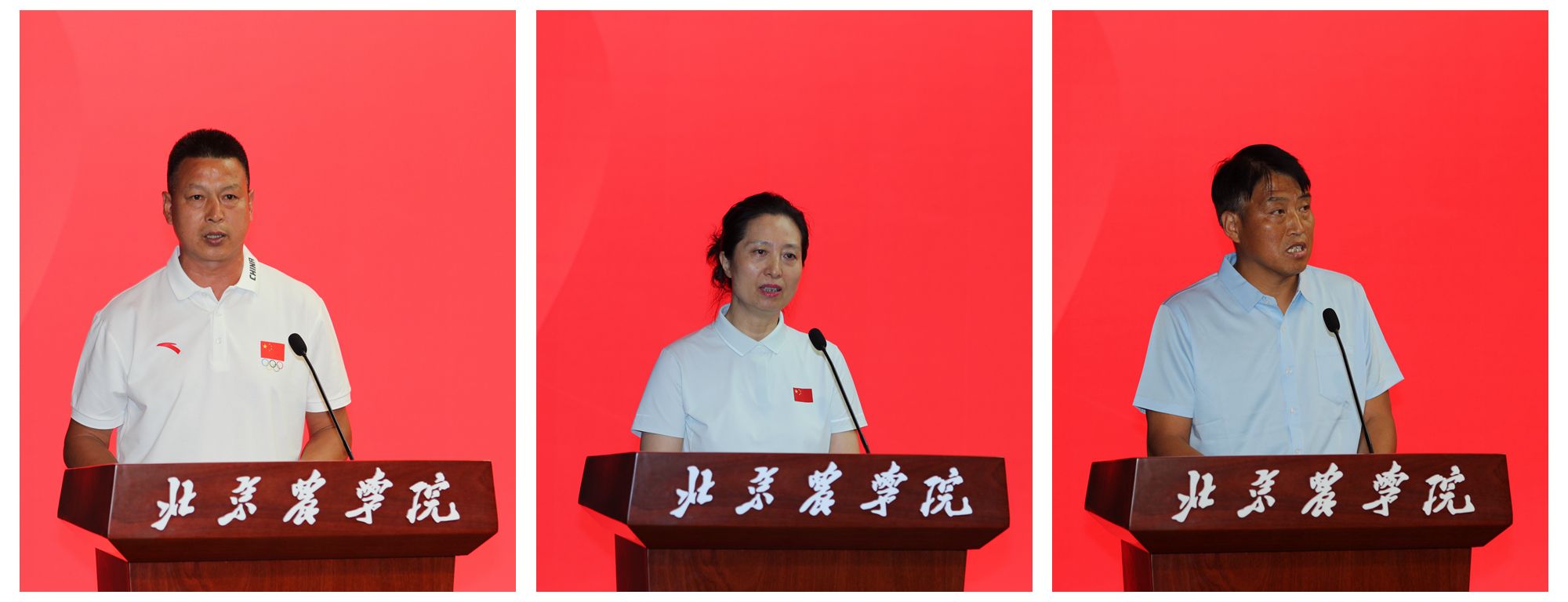 教练员代表刘军占、王秀云、吴宝利分别发言。讲述了他们牢记初心使命,悉心指导训练、以体育人的做法和心得体会,并表示将在学校党委坚强领导下,继续以更加饱满的热情投入到体育教学、训练工作中,不断提升自己的执教水平,为助力学校高质量发展作出积极贡献。