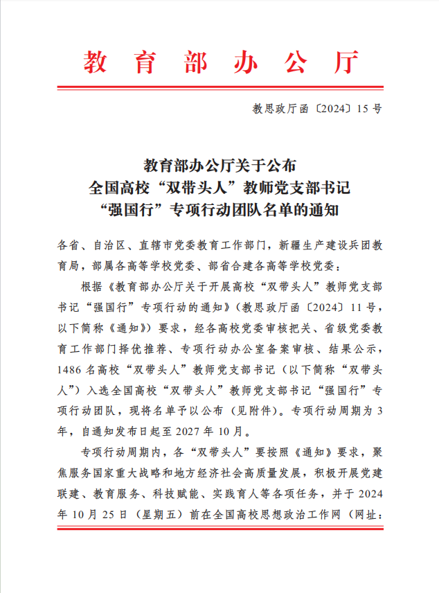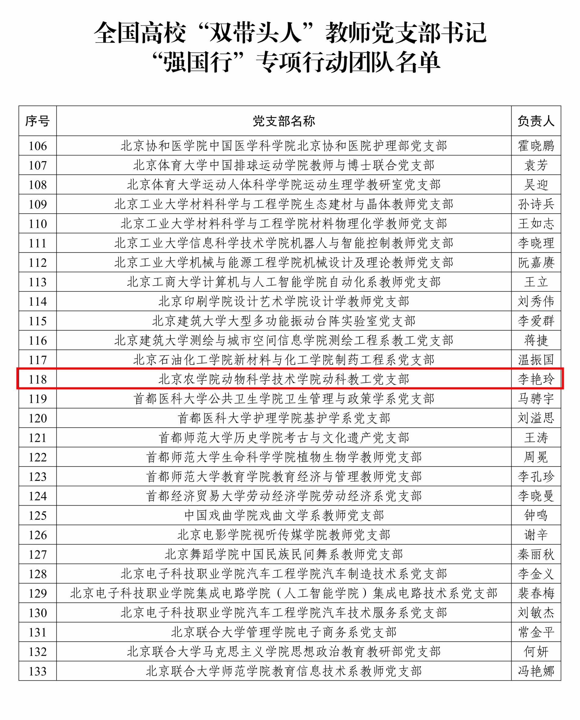 高校“双带头人”教师党支部书记“强国行”专项行动计划由教育部发起并组织开展,旨在创新落实立德树人根本任务,充分发挥高校“双带头人”的示范引领作用,引导广大师生在以中国式现代化全面推进强国建设、民族复兴伟业新征程上砥砺新担当、展现新作为。“强国行”专项行动周期为3年,李艳玲将带领动科教工党支部聚焦国家重大战略和地方经济社会高质量发展需求,积极开展党建联建、教育服务、科技赋能、实践育人等各项任务,形成优秀党建成果案例。