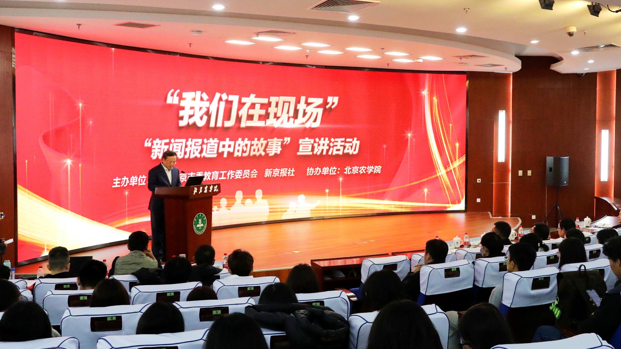 近日,由北京市委教育工委、新京报社主办,best365官方网站协办的“我们在现场——新闻报道中的故事”宣讲活动在best365图书馆报告厅举行。新京报社时政新闻部副主编郭超、体育新闻部首席记者孙海光深入浅出地分享了“记者眼中的奥运会”以及新闻背后的故事,为四所高校的260余名师生讲授了一堂生动的“大思政课”。