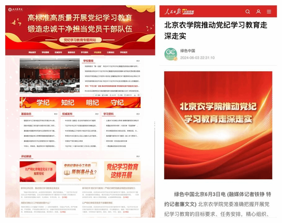 学校党委第一时间组织召开党纪学习教育动员部署会,围绕深入学习研讨、加强警示教育、深化解读培训、强化检视整改4方面内容,明确9项重点任务,制定学校党委、二级党组织、基层党支部三张任务清单,扎实推进党纪学习教育走深走实。高质量举办党委领导班子专题读书班。建立统筹式统学、头雁式领学、立体式深学、沉浸式活学、情景式践学“五式五学”机制,各二级党组织、各支部通过专题研讨、辅导报告等方式深入学习,不断用党规党纪校正思想和行动。召开全校警示教育大会,集中观看警示教育片,让心存敬畏、手握戒尺成为党员干部的日常自觉。相关做法被人民网、《中国报道》等媒体报道。