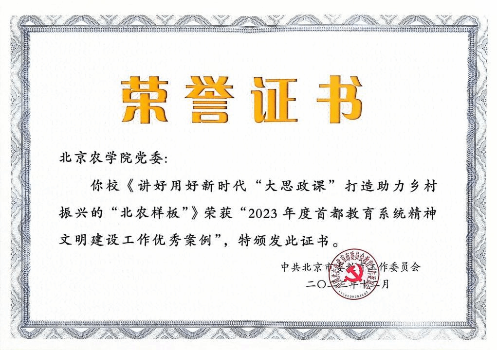 全力办好立德树人关键课程,思政课教师团队在第四届北京高校教师教学创新大赛中获一等奖、在全国高校教师教学创新大赛中获二等奖,实现新突破。师生同上一堂乡村振兴“大思政课”案例,先后荣获首都教育系统精神文明建设工作“优秀案例”、北京市思想政治研究会“优秀案例”和全国高校教育融媒体“典型案例”。大力树正气、树榜样、树典型,开展“最美北农人”评选和宣传宣讲工作,举办优秀教师表彰大会、优秀学生表彰大会,开展“讲述我(我们)的育人故事”系列活动,遴选推荐的两个优秀讲述故事案例分获市级一等奖和二等奖。持续提升新闻宣传质量和水平,各类主流媒体对学校报道超过500次。