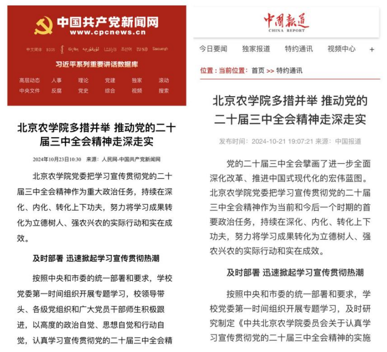 及时跟进学习习近平总书记系列重要讲话和重要指示批示精神,深入学习宣传贯彻党的二十届三中全会精神,严格落实党委常委会“第一议题”制度和党委理论学习中心组学习制度,人民网、中国报道等多家媒体对学校《多措并举推动党的二十届三中全会精神走深走实》进行报道。以改革创新精神全力推动学校高质量党建引领高质量发展不断迈上新台阶、取得新进展。学校绩效考核和领导班子考核结果均为“优秀”。北京市委常委、教育工委书记于英杰,北京市政府党组成员、副市长马骏,市级老同志到best365调研,对学校高质量党建引领高质量发展、科技赋能乡村振兴取得的成绩给予充分肯定。
