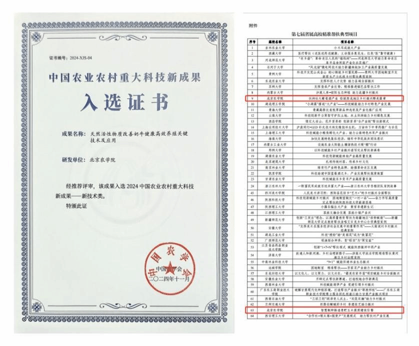 科技创新不断取得新突破,获批国家“十四五”重点研发计划项目2项,“天然活性物质改善奶牛健康高效养殖关键技术及应用”入选2024中国农业农村重大新技术。学校按照“一家主建、多家共享、社会共用”原则,在北京市率先成立4个乡村振兴驿站,高质量建设科技小院、教授工作站、博士农场和大学科技园,深度融入北京农业中关村建设和“百千工程”建设,连续四届共5个案例成功入选教育部省属高校精准帮扶典型项目,“头雁”项目考核再获全国“优秀”;学校与市残联、市教委签约共建北京市导盲犬培训基地,扎实推进北京市民生实事项目。中国残联主席程凯,中国残联党组书记、理事长周长奎,中国残联理事、中国盲协主席李庆忠到学校调研导盲犬培训基地建设工作并对基地建设进展给予充分肯定。