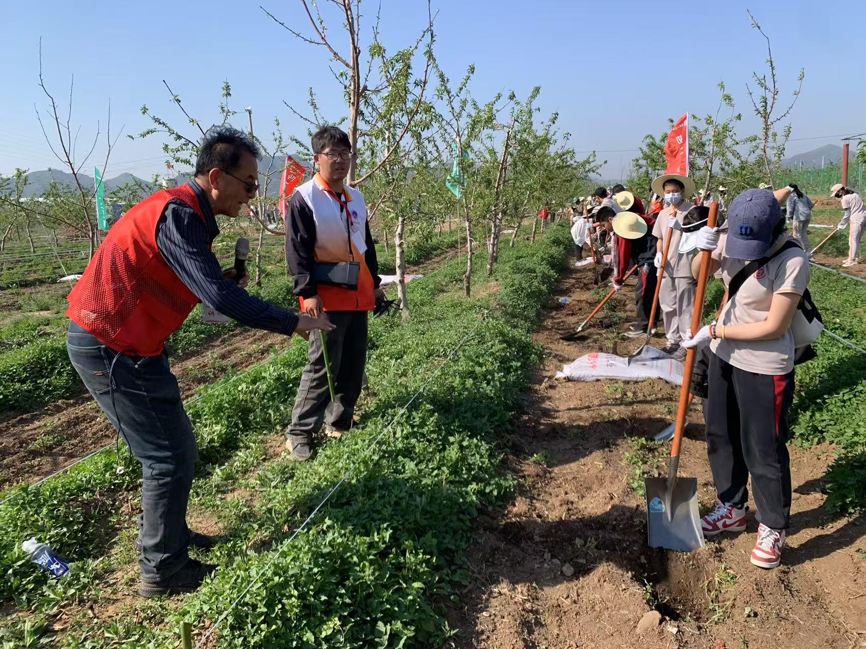 五一前夕,文法与城乡发展学院高程达老师、生物与资源环境学院刘悦萍老师带领寅洞村科技小院师生在平谷区刘家店镇为北京师范大学附属中学初二年级900余名师生开展耕读研学活动,为同学们提供了一次沉浸式的农业知识学习体验。刘悦萍在生态桥园区为学生们讲解“桃园废弃物资源化利用”知识,高程达在丫吉农场精心指导学生们学习了“桃园整地作畦”的专业技能。
