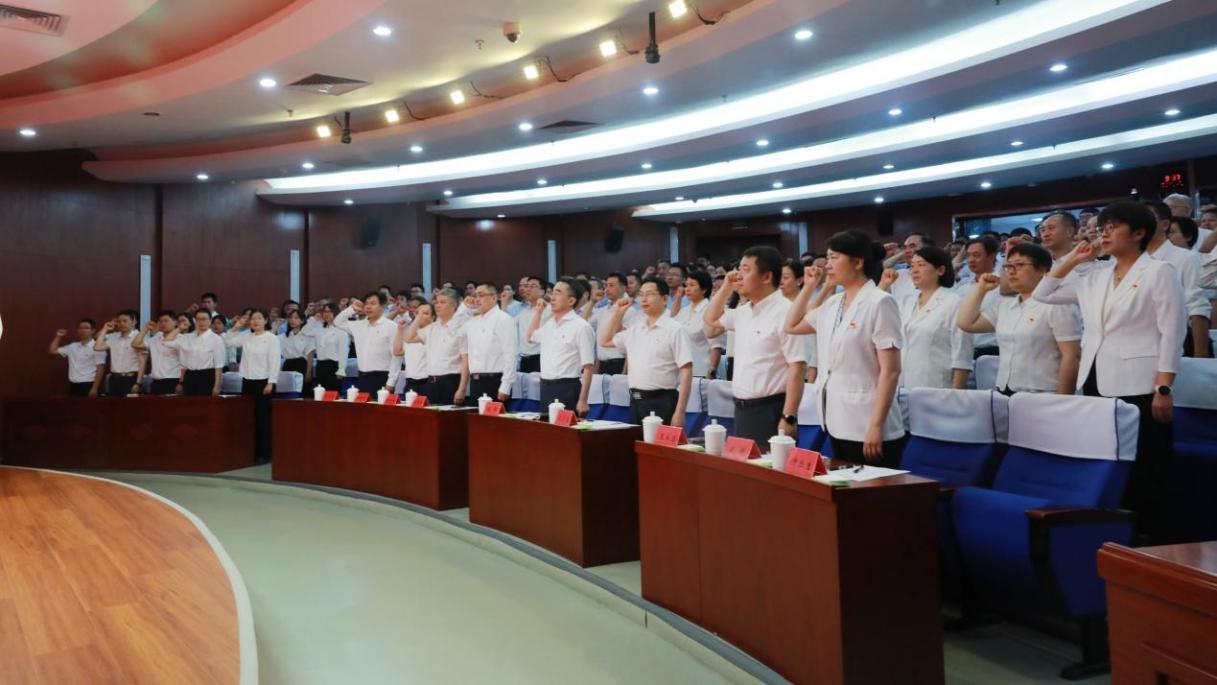 夏奎武带领新党员入党宣誓、老党员重温入党誓词。