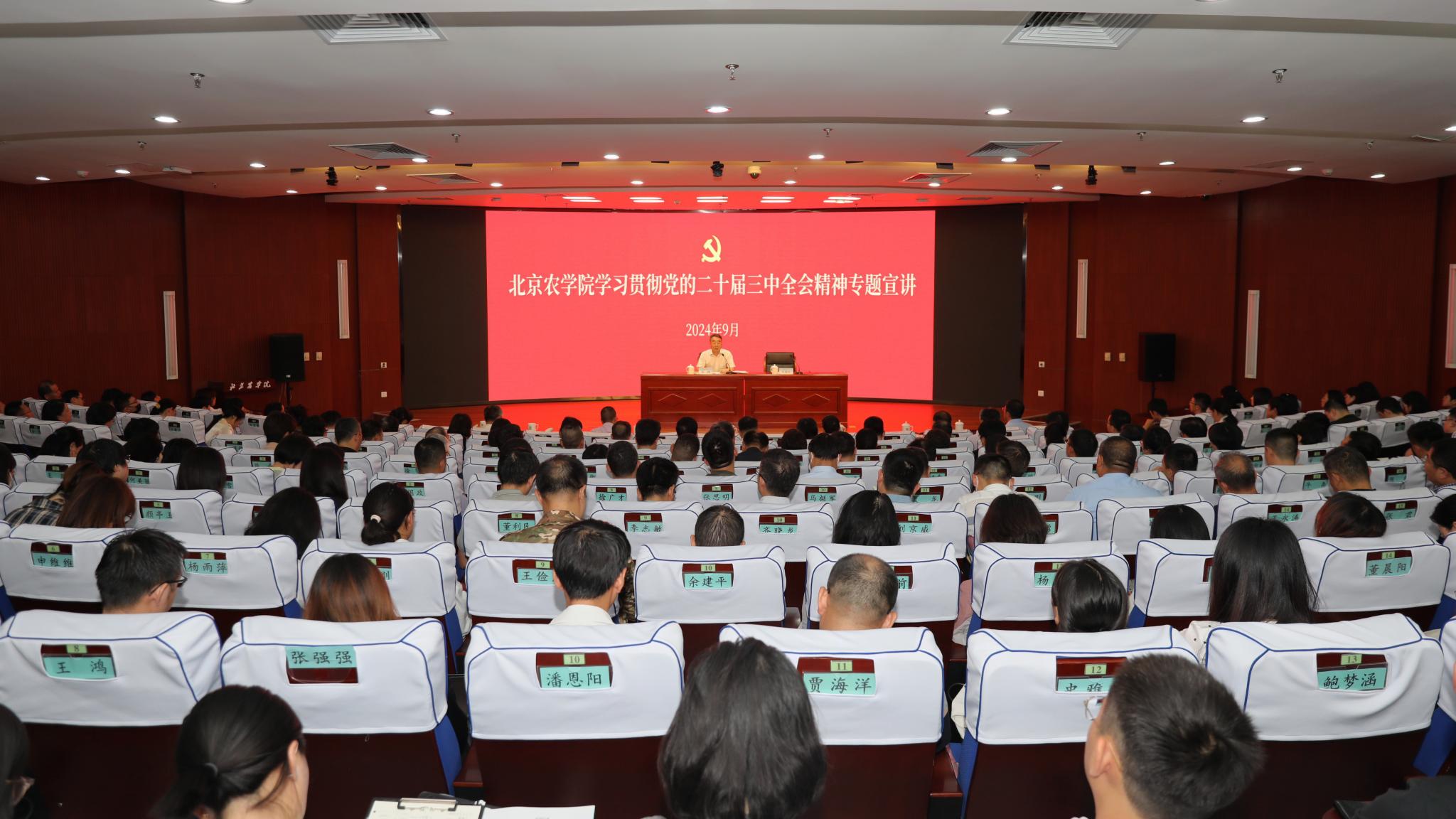 把党的政治建设摆在首位。始终牢记“看北京首先要从政治上看”的要求,高质量开展“第一议题”学习和党委理论学习中心组集体学习,深入学习贯彻习近平总书记系列重要讲话和指示批示精神,深入学习贯彻党的二十届三中全会和全国全市教育大会精神,精心组织“学”、旗帜鲜明“宣”、全面对标“做”,举办培训班,成立宣讲团,加强研究阐释,以全方位、全覆盖、多层次的学习宣传贯彻,推动党的创新理论入脑入心;《深入学习宣传贯彻党的二十届三中全会精神以改革创新精神加快建设都市农林特色高水平应用型大学》宣讲报告,被市委宣传部、市委讲师团评为北京市2024年“宣讲家杯”年度优秀作品。