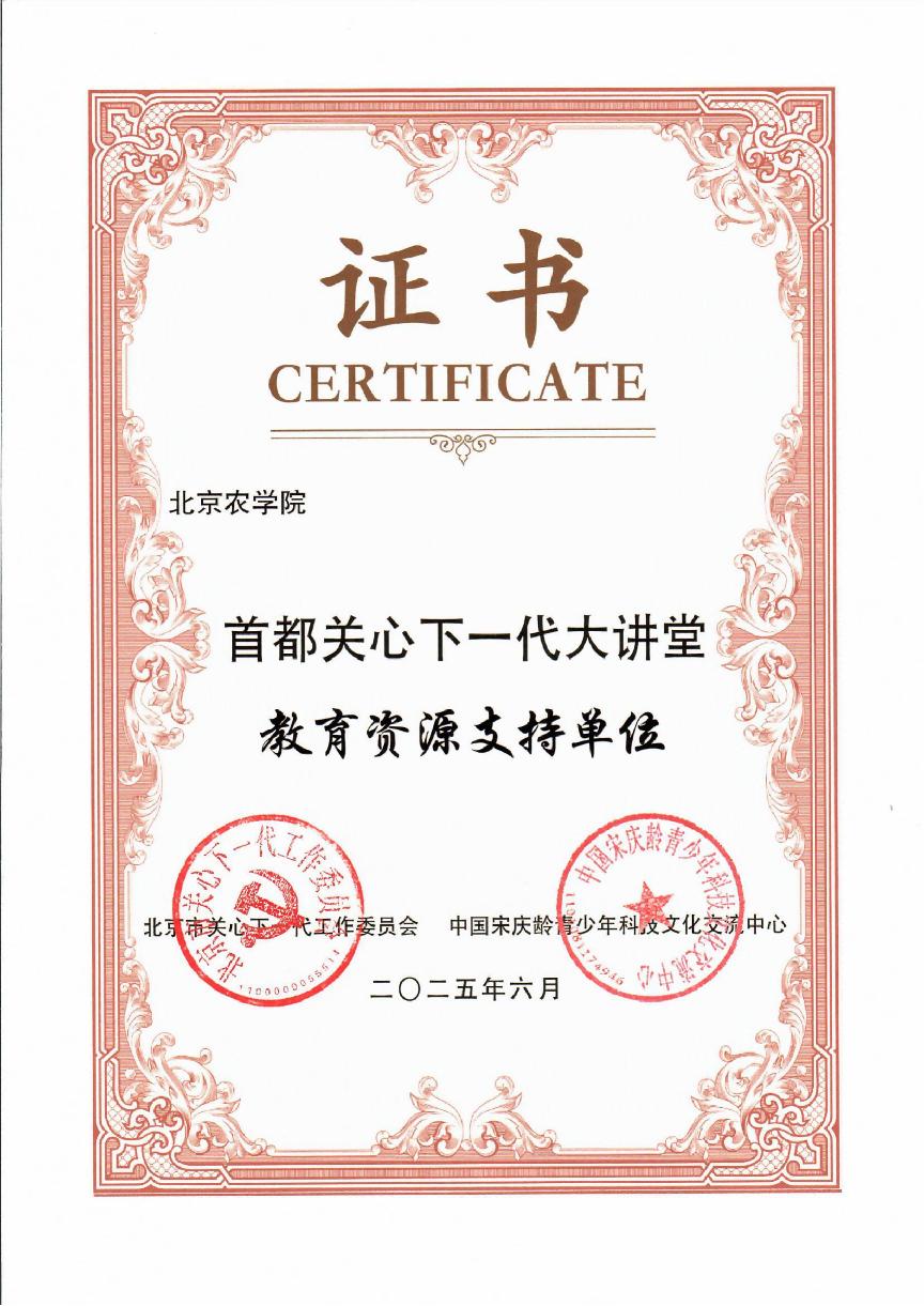 学校作为“首都关心下一代大讲堂”资源支持单位,将积极发挥自身特色和优势,集聚丰富的课程、教师等资源,支持“首都关心下一代大讲堂”打造一批“叫得响、传得开、留得住”的思政“金课”,为促进首都青少年健康成长和全面发展贡献“北农力量”。