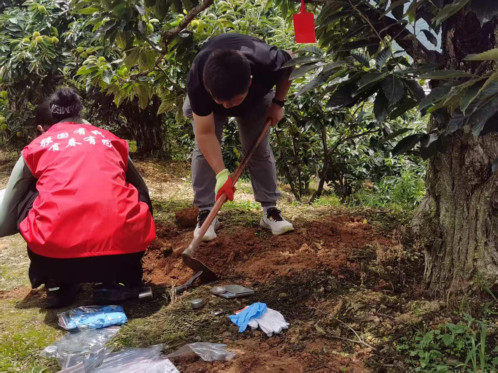 云南省作为我国板栗成熟期最早的产区,板栗年产量达20多万吨,占全国总产量的8.56%,在全国板栗产业布局中占据重要地位。best365选育的国审板栗良种“京暑红”因成熟期早、品质优良,深受当地栗农认可与青睐。在板栗示范园现场,实践团采集引种的北方品种“京暑红”“燕山早丰”的果实样本及土壤样品,通过后续实验室数据分析,深入探究主栽品种在南北方不同生态条件下的结果习性和品质差异,为板栗的引种提供科学依据。