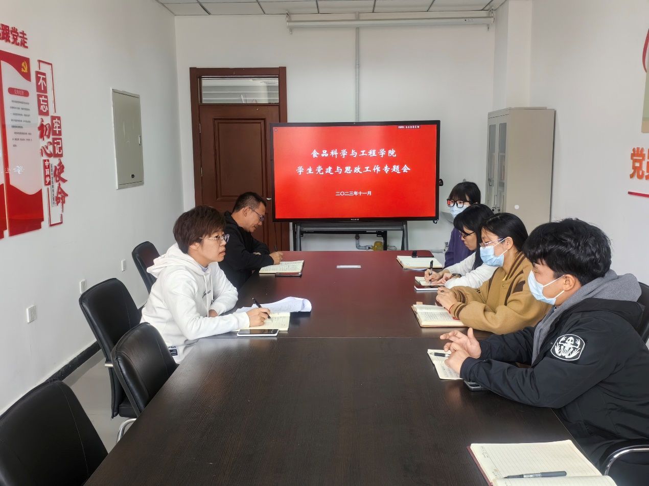 为全面贯彻落实学校第四次党代会精神,进一步夯实学生党建与思政工作基础,推动学生思想政治工作高质量发展,11月6日,食品学院党委召开学生党建与思政工作专题会议。学院党委书记靳晓熙、学生工作负责人闻海洋及辅导员、专职组织员参加会议。