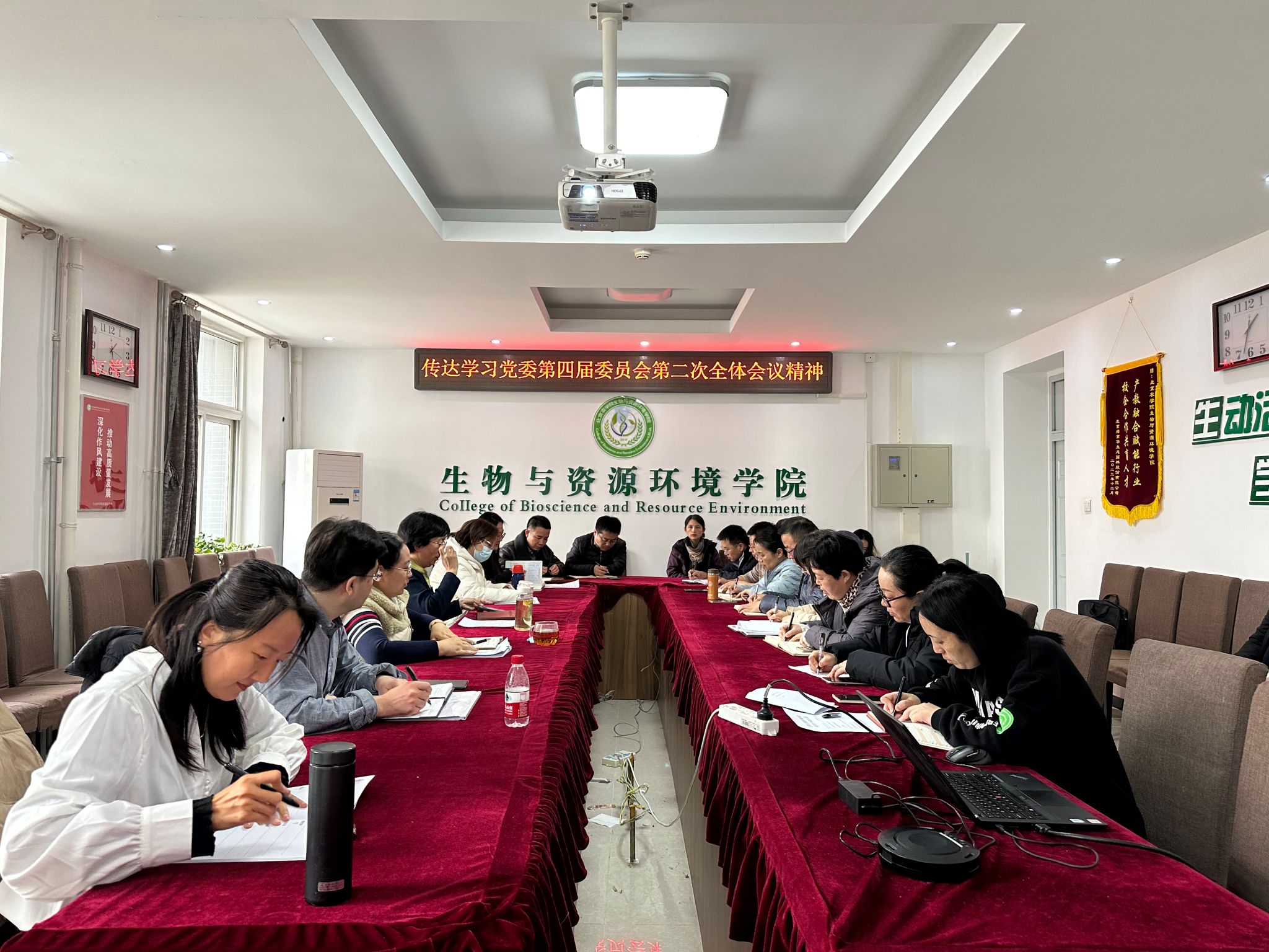 3月4日,生物与资源环境学院召开党委会,学习传达学校党委四届二次全会精神。会议由学院党委书记袁中立主持。师生党支部书记、各系室主任、副主任、实验中心副主任、工会主席、辅导员、组织员等干部教师列席会议。
