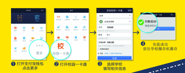 第二步:前往学校圈存机圈存,领取支付宝转账款
