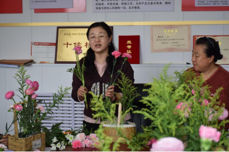 近日,园林学院侯芳梅副教授花卉艺术团队到延庆区大庄科乡董家沟村开展家庭养花与插花艺术培训,讲解庭院绿化美化和居室花卉装饰知识,提高村民家庭养花技巧,丰富村民们的精神文化生活。