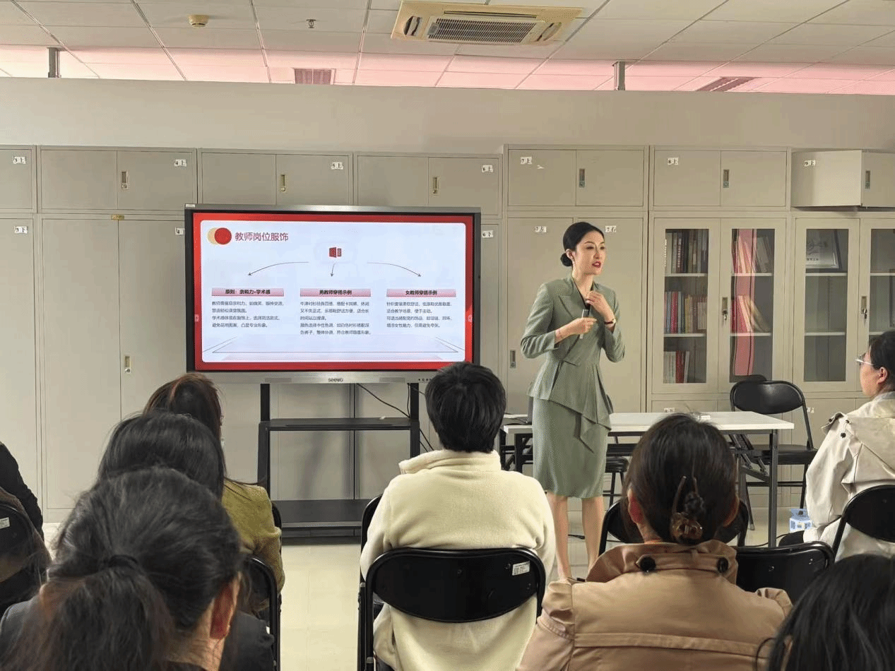 活动现场气氛热烈,教职工们积极参与互动答疑,就自身在形象管理、服装搭配等方面遇到的困惑向王老师请教。王老师耐心解答,并现场示范,让大家在轻松愉快的氛围中收获了知识,提升了技能。