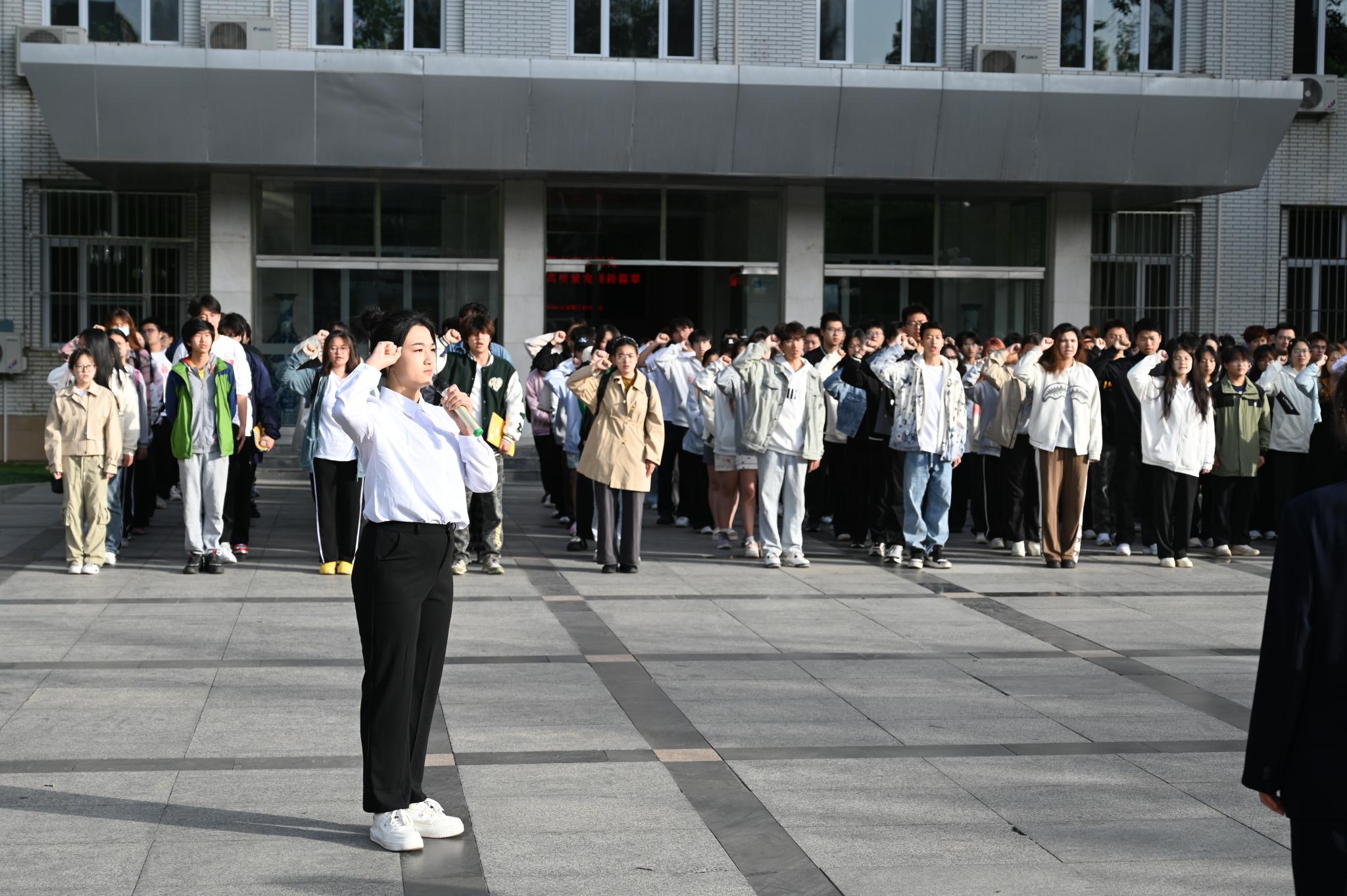 当第一缕朝阳穿透云层,best365官方网站女子国旗手踏着铿锵正步走来,深绿色制服与金色绶带交相辉映,步履间尽显新时代青年的锐气与担当。随着《义勇军进行曲》响彻校园,五星红旗在全体师生灼灼目光中冉冉升起,国歌声里激荡着跨越百年的精神共振,这一刻,历史的回响与青春的脉动在此交融。