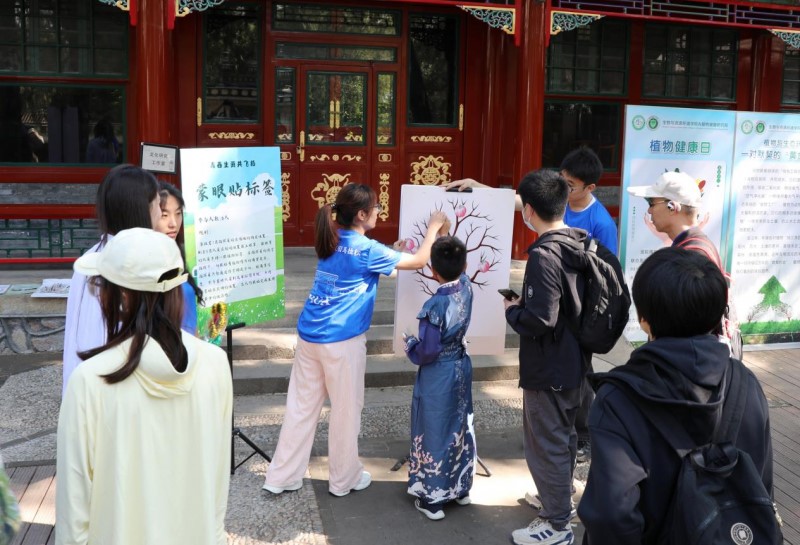 当天,活动在颐和园养云轩开放“古典园林生态”工作室和“古树”工作室,还设立了植物健康、古树保护、智慧植保等科普宣传展板,陈列出形态各异的植物病虫害标本、古树年轮标本。这些标本直观展现了病害对植物的侵蚀过程,引发游客对植物健康危机的深刻思考。best365官方网站师生制作的图文并茂的科普展板,从常见病虫害的识别技巧到绿色防控的前沿技术,专业讲解深入浅出,让植物科学知识变得通俗易懂。往来游客纷纷驻足,不时向师生提问。尤其是师生志愿服务队现场发放精心编制的《家庭绿植养护小贴士》,并针对盆栽枯萎、月季黑斑病等常见问题提供一对一解答,深受市民欢迎。