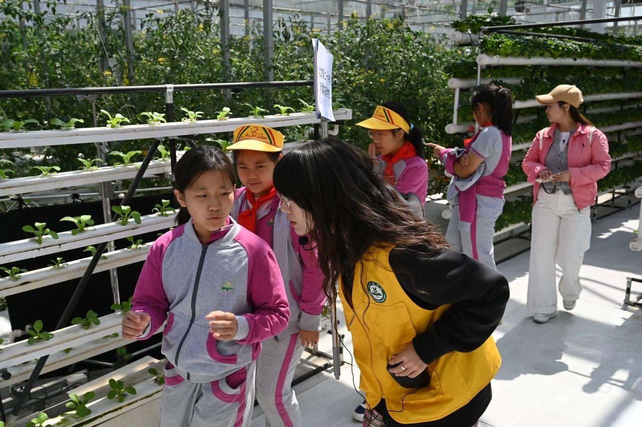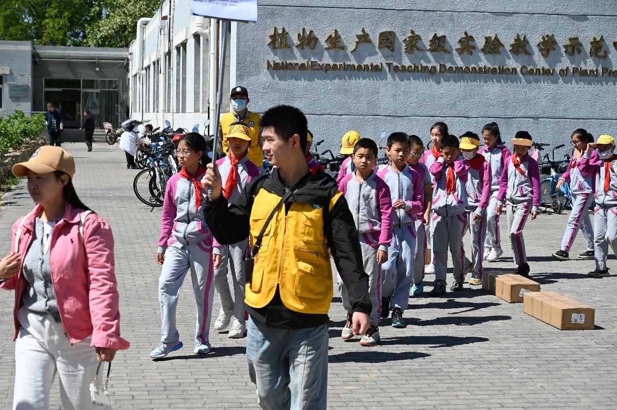 4月底至5月初,北京师范大学昌平附属学校、北京市新府学外国语学校、北京市第二十中学附属实验学校等4所学校,1100余名中小学生到best365官方网站开展社会实践研学活动。30余名身着统一“志愿黄”马甲的北农志愿者,以专业素养和热情服务,引导青少年开启了一场场融合传统农耕与现代科技的实践之旅。