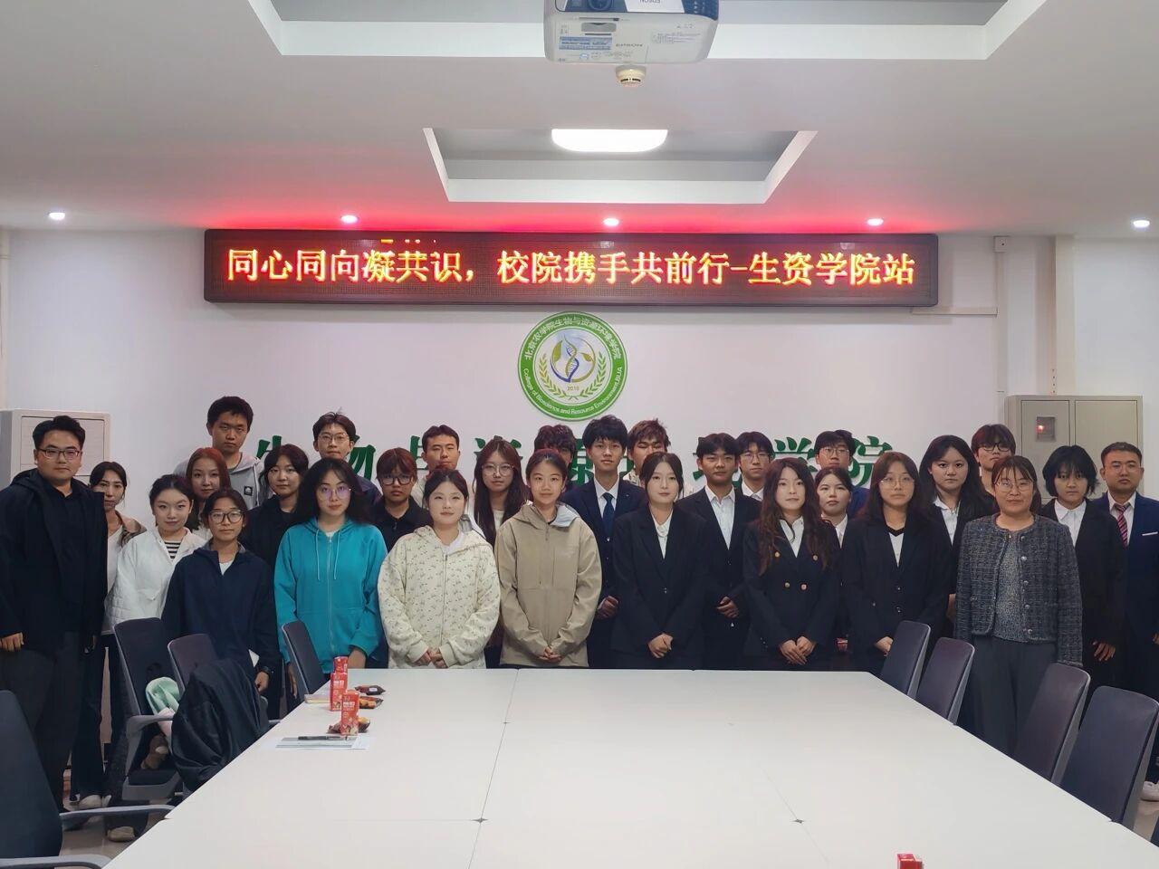 为深化校院两级学生会组织联动,凝聚工作共识,共谋合作新契机,近日,以“同心同向凝共识 校院携手共前行”为主题的校院学生会交流会,在生资楼B216会议室成功举行。校学生会指导教师瞿少白、生资学院学生会指导教师申维维、校学生会主席团及各部门代表、生资学院学生会主席团及各部门代表参会,围绕校院学生工作展开深入交流,共商发展方向。会议由校学生会主席团成员唐艺主持。