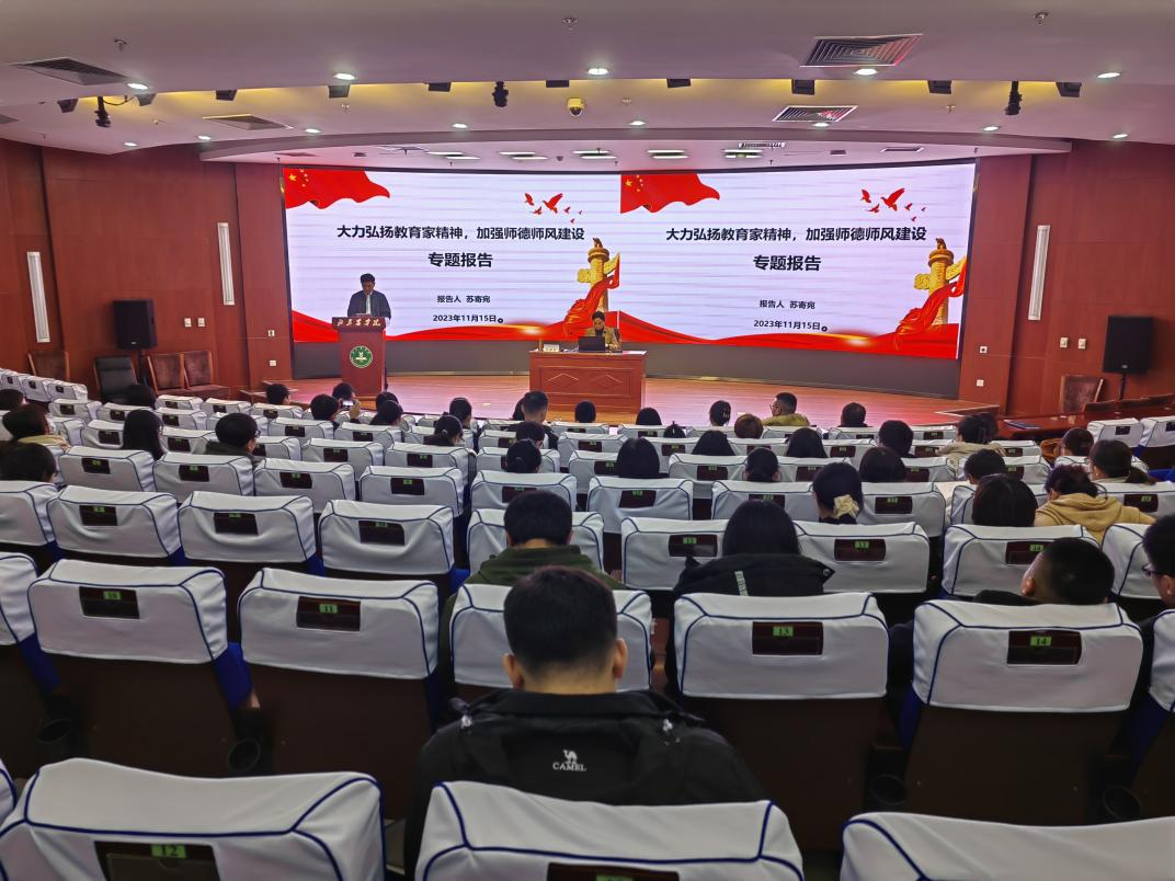 报告中,苏寄宛教授以“大力弘扬教育家精神 加强师德师风建设”为主题,结合习近平总书记关于教育的重要论述和对教育工作者的殷切希望,从强化师德责任意识、明确师德形势任务、严格师德正风肃纪等方面,深刻剖析了师德师风建设对于推进教育强国建设的重大意义,深入分析了加强师德师风建设的时代背景及当前高校师德师风建设的形势与任务,并结合教育部公开曝光的违反教师职业行为十项准则典型案例及中华优秀传统文化中的师德师风观,系统阐释了高校教师师德建设应遵循的相关规范和标准。专题报告深入浅出,内容丰富,旁征博引,生动形象,具有很强的理论性、指导性和针对性。
